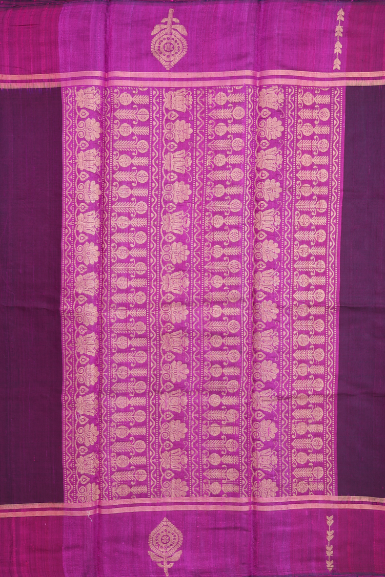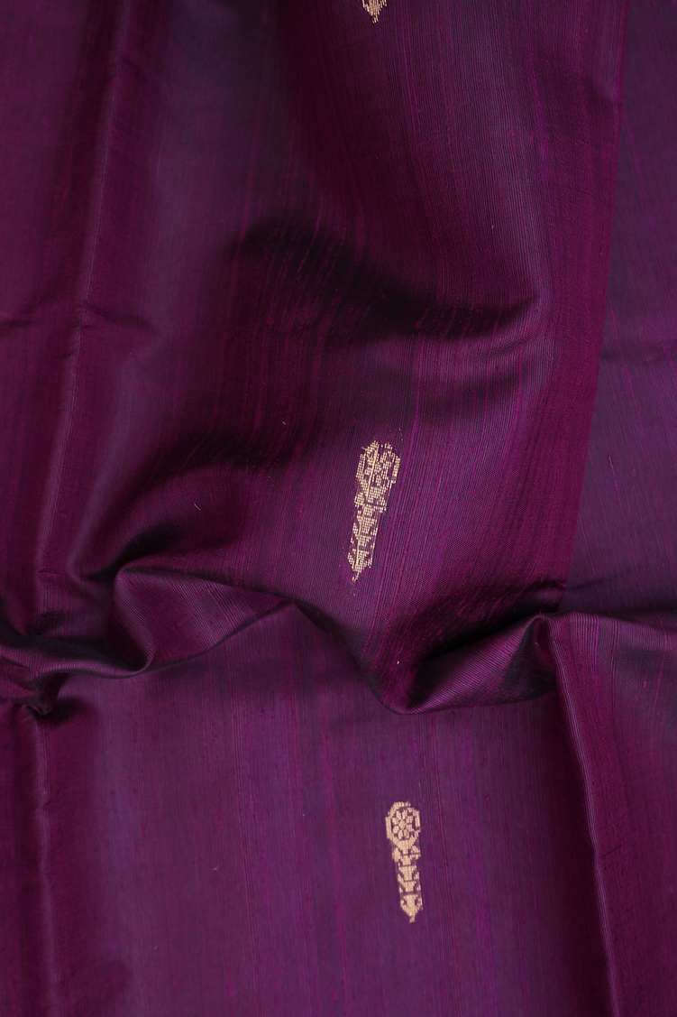 Elevate your ethnic wardrobe with this striking jute saree in deep purple, adorned with intricate zari buttas that catch the light beautifully. The natural texture of jute fabric offers breathability and comfort, making it ideal for warm seasons while maintaining an understated elegance. The shimmering gold zari embellishments add a touch of opulence without overwhelming the design. Perfect for festive occasions, cultural celebrations, or anyone seeking a distinctive saree that balances traditional craftsmanship with contemporary sensibility. A versatile piece that transitions seamlessly from daytime events to evening gatherings.