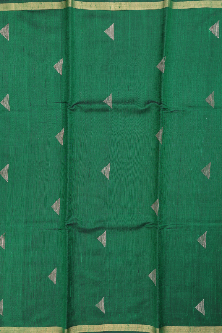 Elevate your wardrobe with this forest green jute saree, adorned with delicate threadwork buttas that add subtle elegance. The natural texture of jute combined with refined embroidery creates a sophisticated look perfect for both formal occasions and festive gatherings. Experience comfort and style harmoniously blended in this timeless piece.
