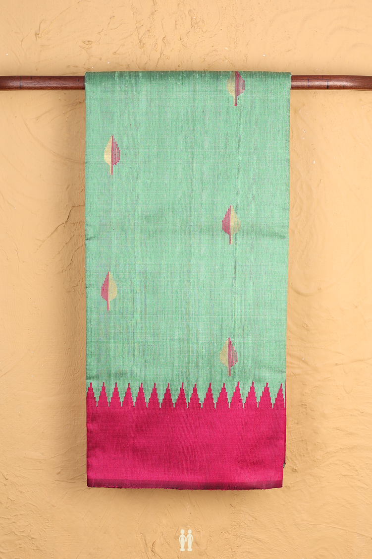 Jute Saree In Green With Threadwork Buttas