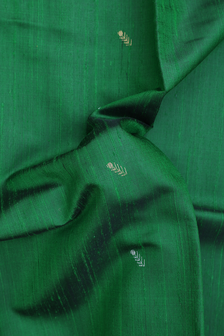 Jute Saree In Green With Zari Buttas