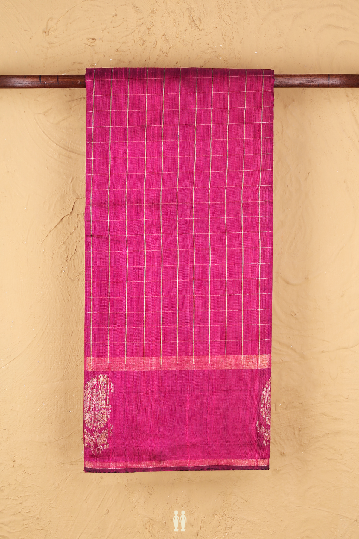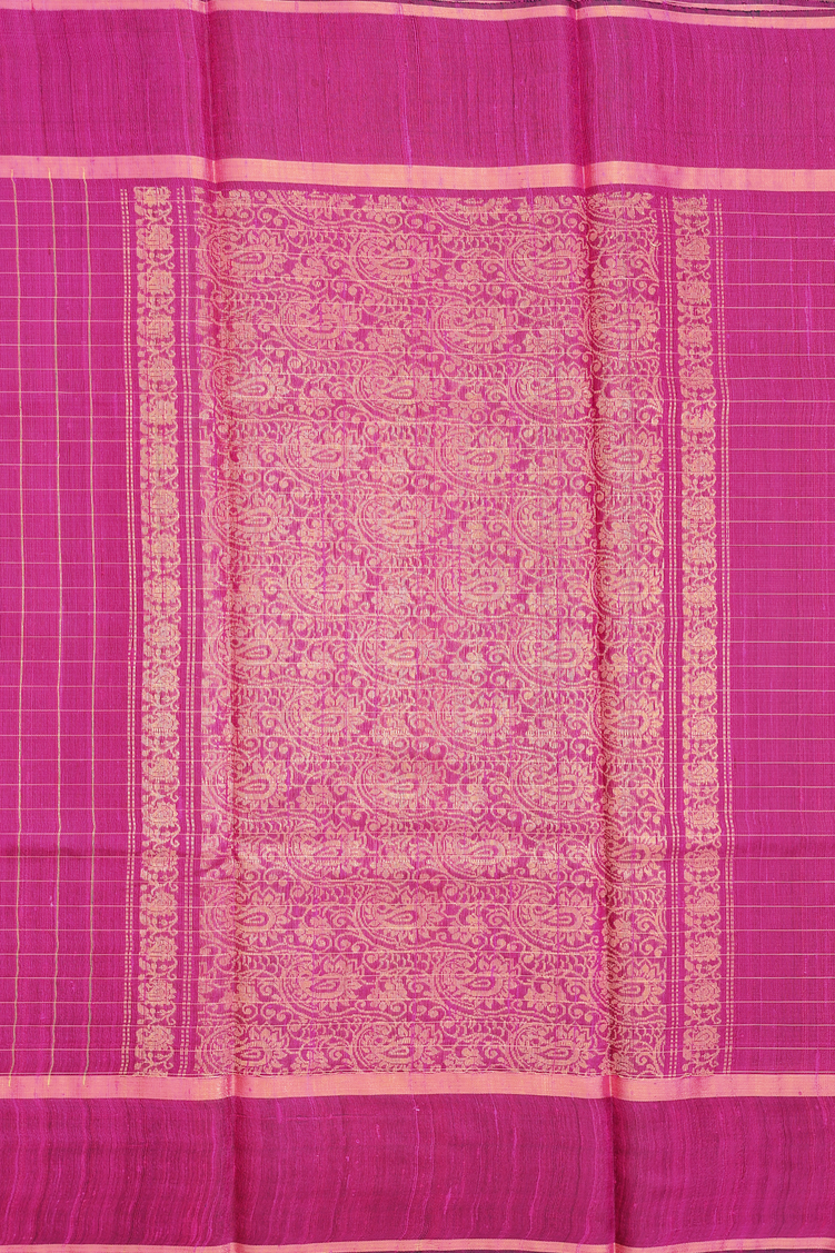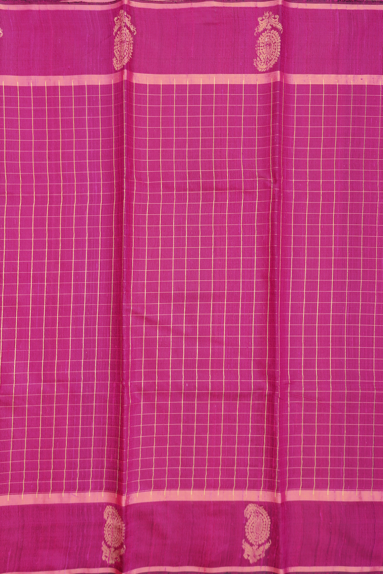 Jute Saree In Magenta With Checks Design