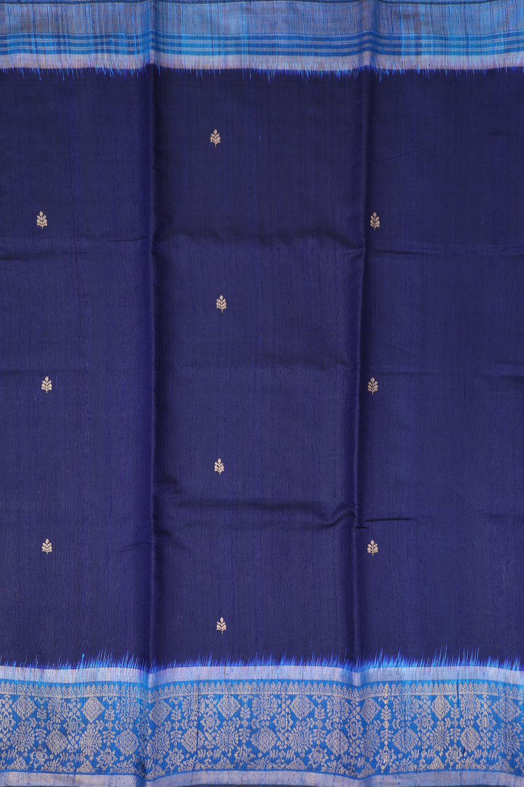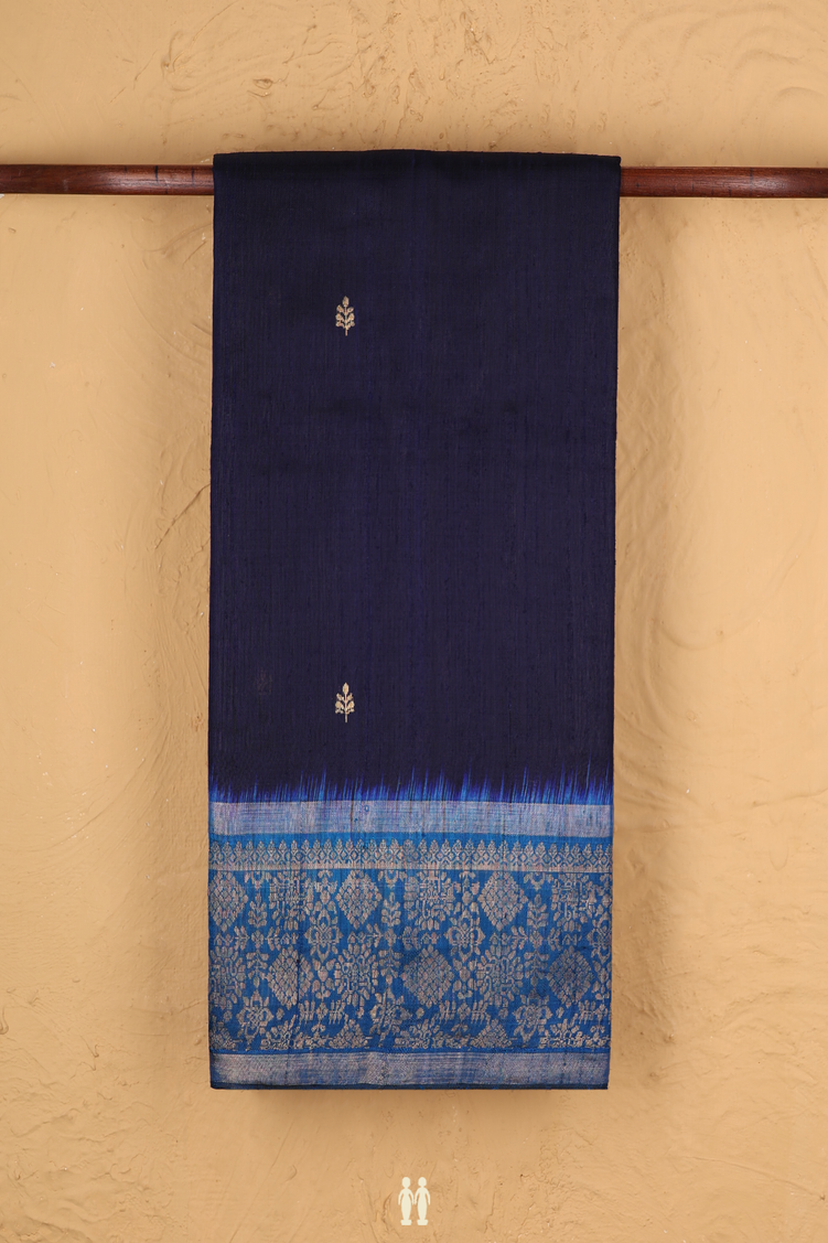 Jute Saree In Navy Blue With Zari Buttas