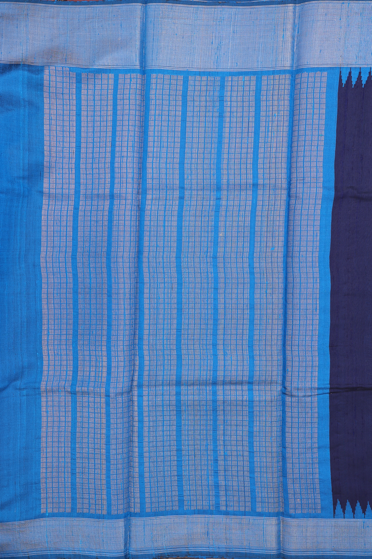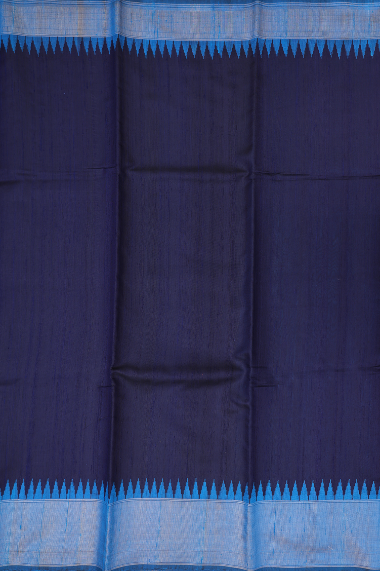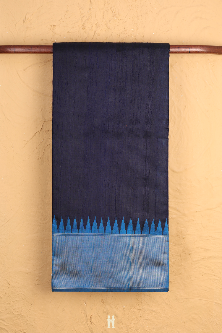 Jute Saree In Plain Navy Blue With Contrast Border
