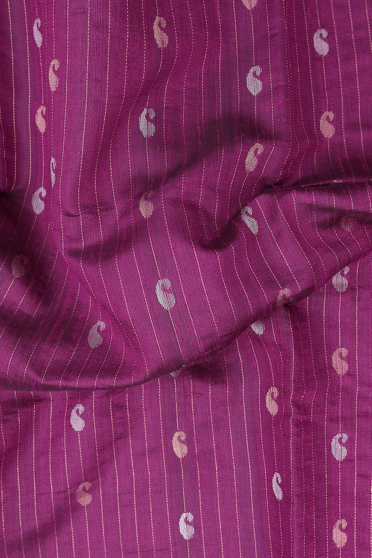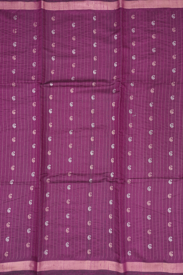 Jute Saree In Plum Purple Along Stripes With Buttas