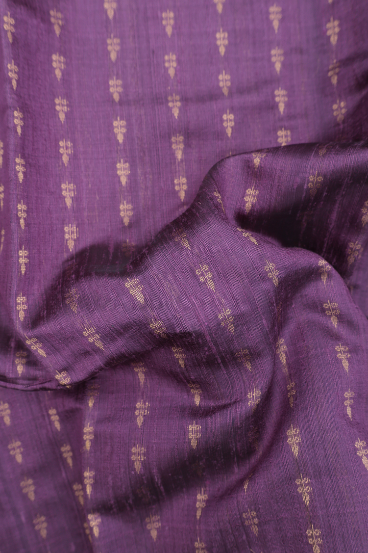 Elevate your elegance with this purple jute saree adorned with delicate zari buttas. The rich texture of jute combined with subtle metallic accents creates a refined look perfect for special occasions. Its sophisticated design offers timeless charm while ensuring comfort throughout the day. A graceful addition to any wardrobe, this saree blends tradition with understated luxury.