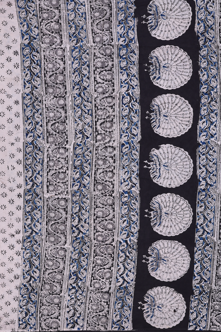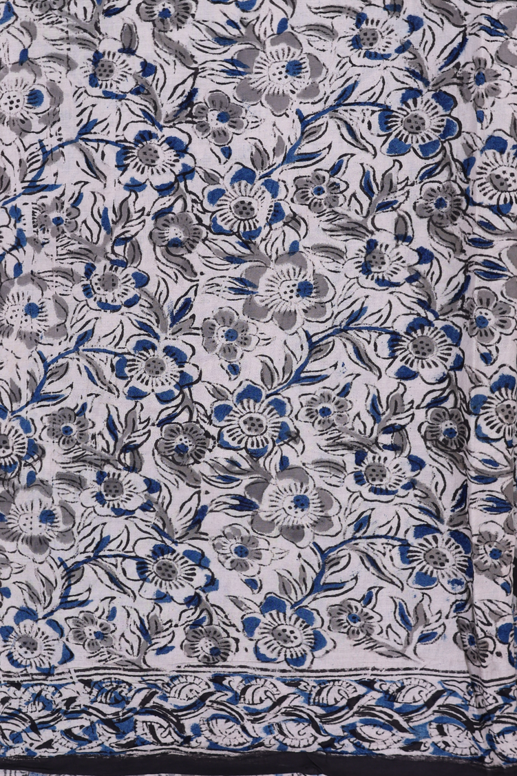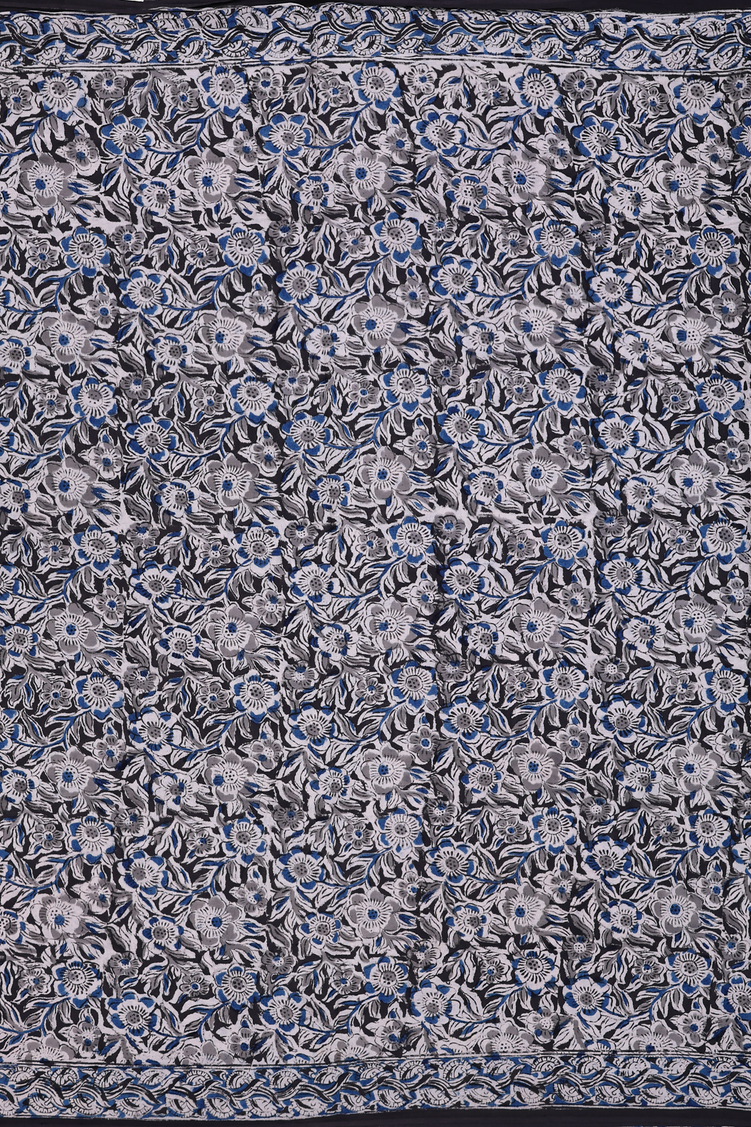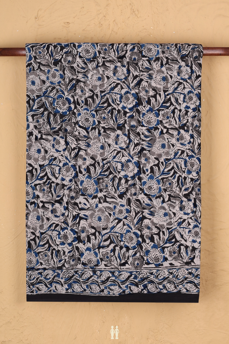 This kalamkari cotton saree in black showcases intricate floral patterns, blending traditional craftsmanship with timeless elegance. Crafted from breathable cotton, it ensures comfort while making a graceful statement. Perfect for both formal occasions and casual gatherings, this saree merges artistry and practicality in one sophisticated ensemble.