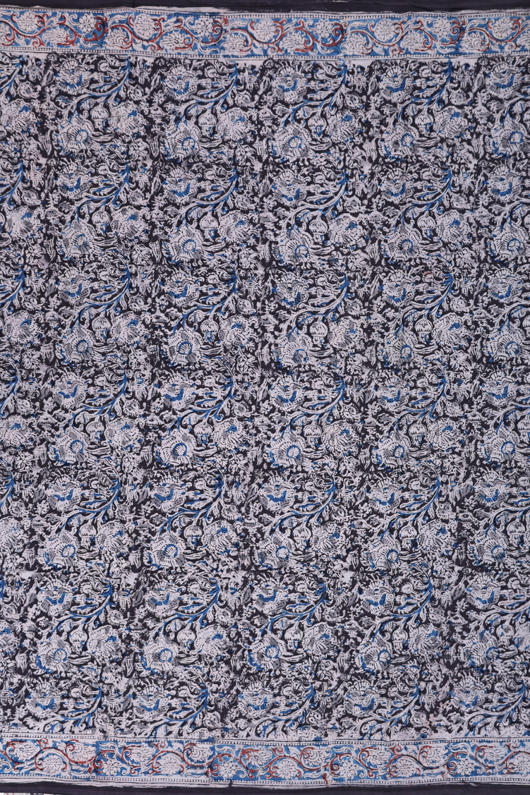 Embrace timeless elegance with this exquisite kalamkari cotton saree, where traditional artistry meets contemporary sophistication. printed floral motifs dance across a rich black canvas, showcasing the intricate craftsmanship of this centuries-old textile technique. The breathable cotton fabric ensures comfort throughout the day, while the classic black backdrop provides versatility for both festive occasions and refined everyday wear. Perfect for those who appreciate authentic Indian heritage and understated luxury.