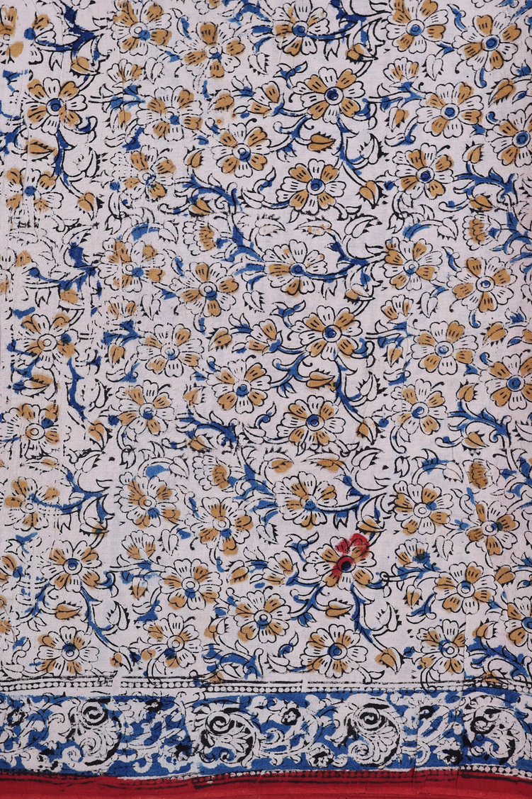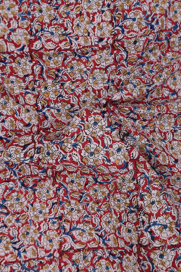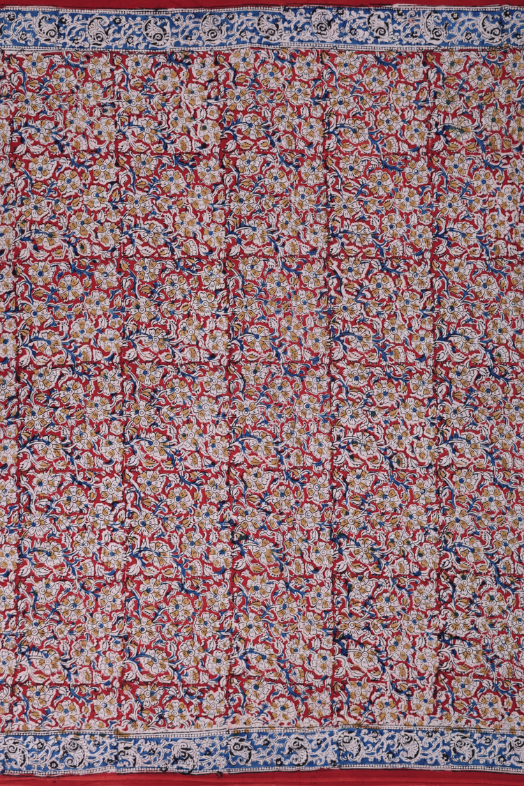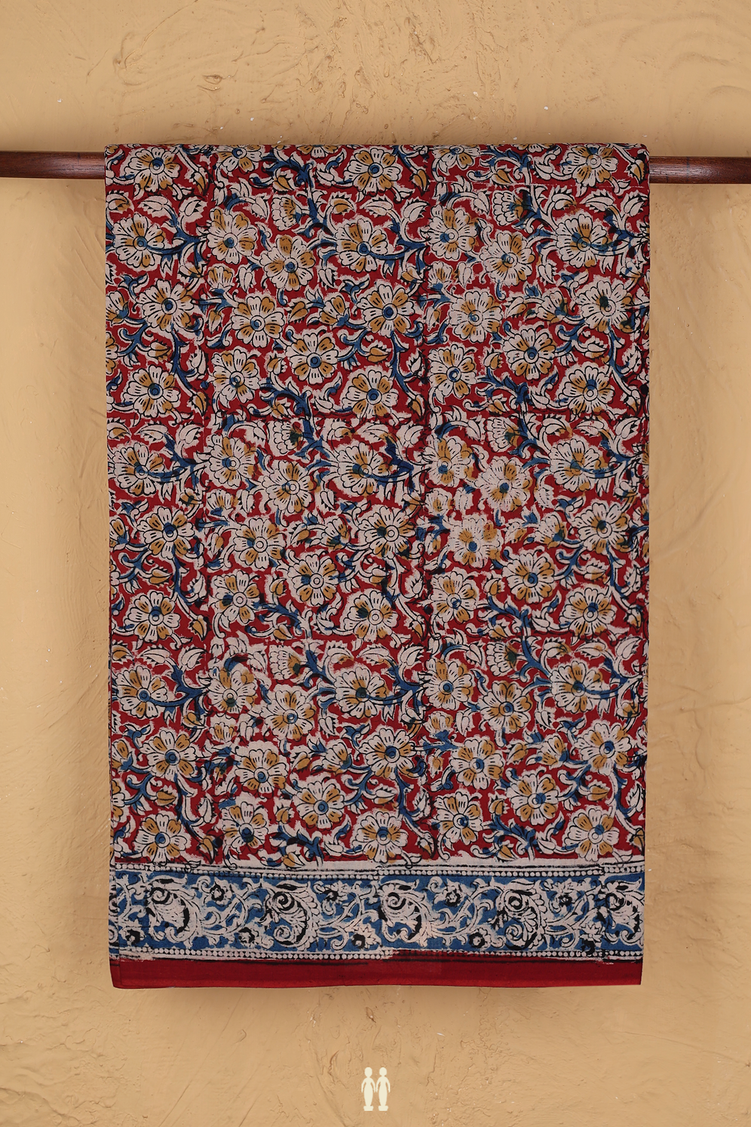 Kalamkari Cotton Saree In Brick Red With Floral Design