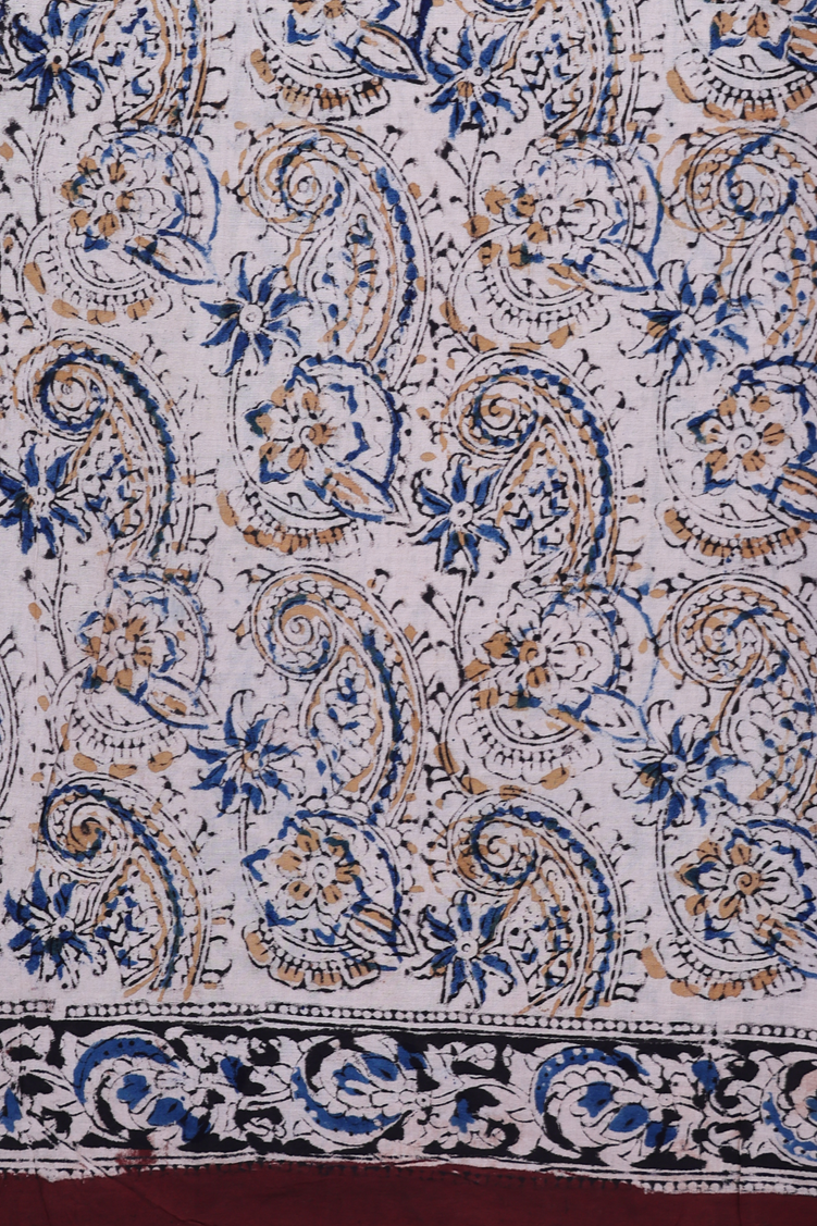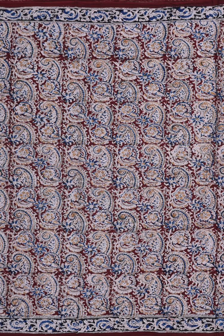 Kalamkari Cotton Saree In Chocolate Brown With Floral Design