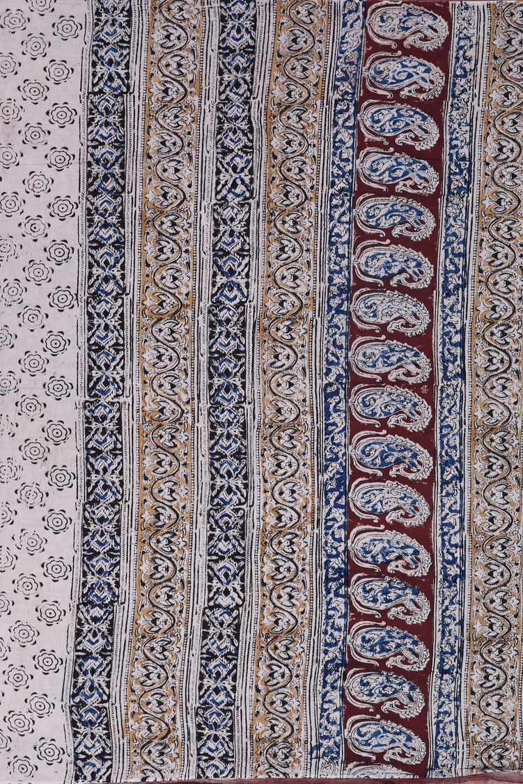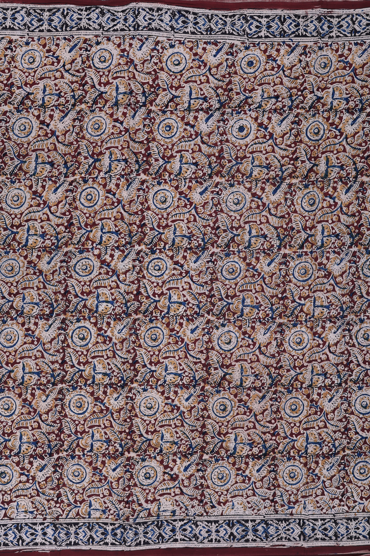 Kalamkari Cotton Saree In Coffee Brown With Floral Design