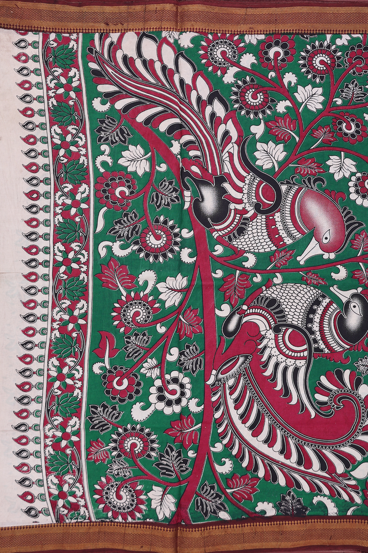 Kalamkari Cotton Saree In Multicolor With Printed Design