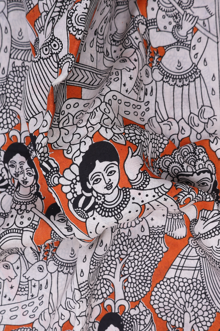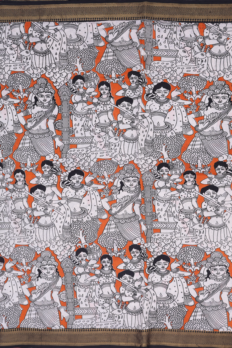 Elevate your traditional wardrobe with this exquisite kalamkari cotton saree in a vibrant orange hue. Featuring intricate printed designs, this saree blends artisanal craftsmanship with breathable comfort. Its rich patterns and lightweight fabric make it ideal for both festive occasions and elegant daytime events. A timeless piece that showcases cultural artistry while ensuring graceful drape and lasting ease.