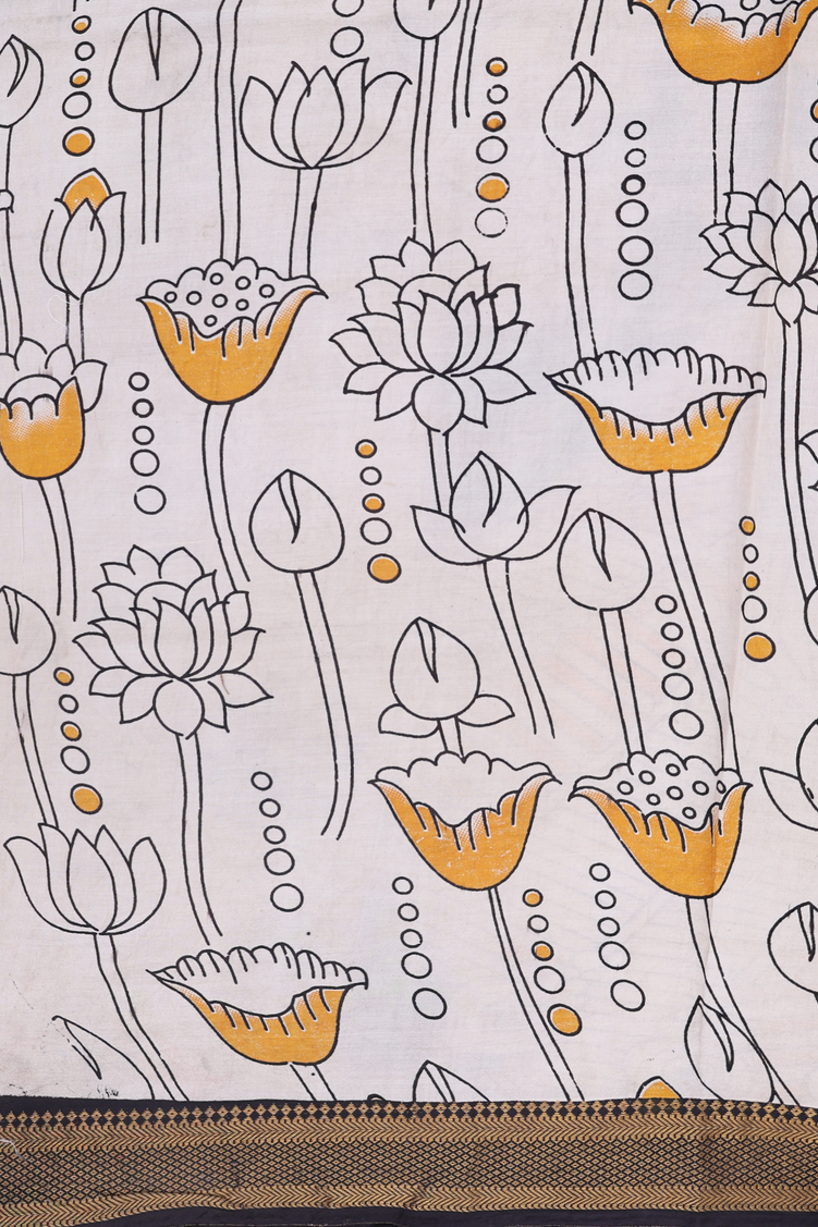 Kalamkari Cotton Saree In Royal Blue With Floral Design