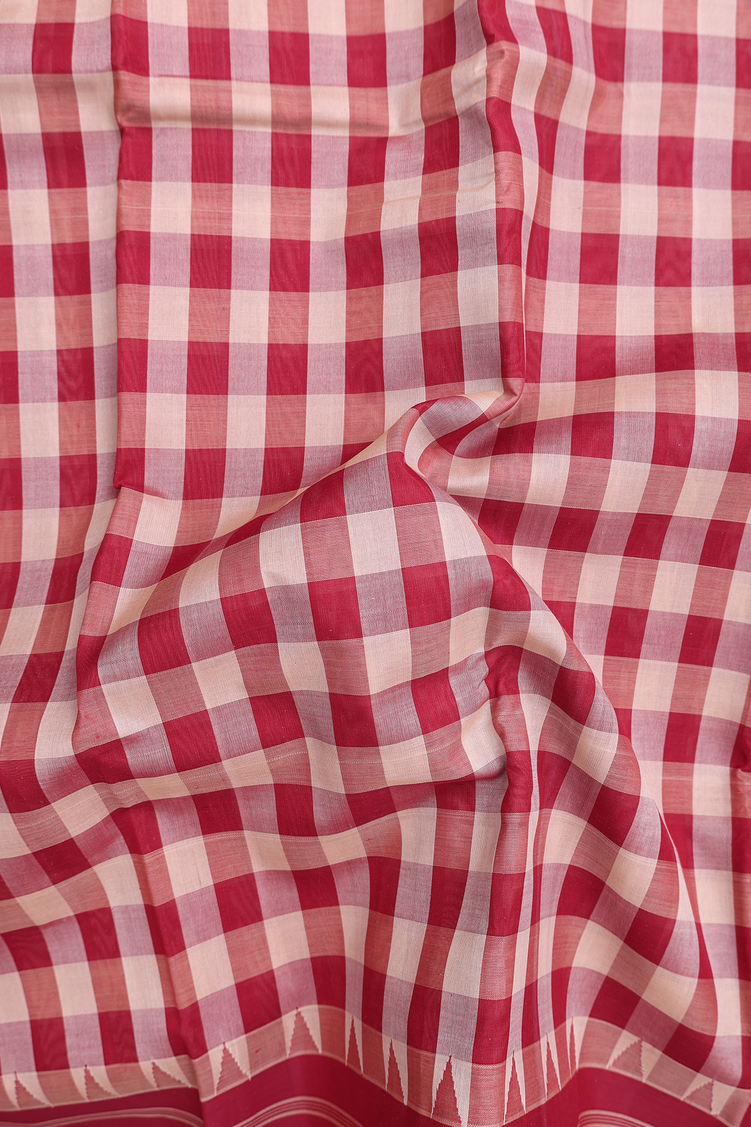 Kanchi Cotton Saree In Beige And Red With Checks Design