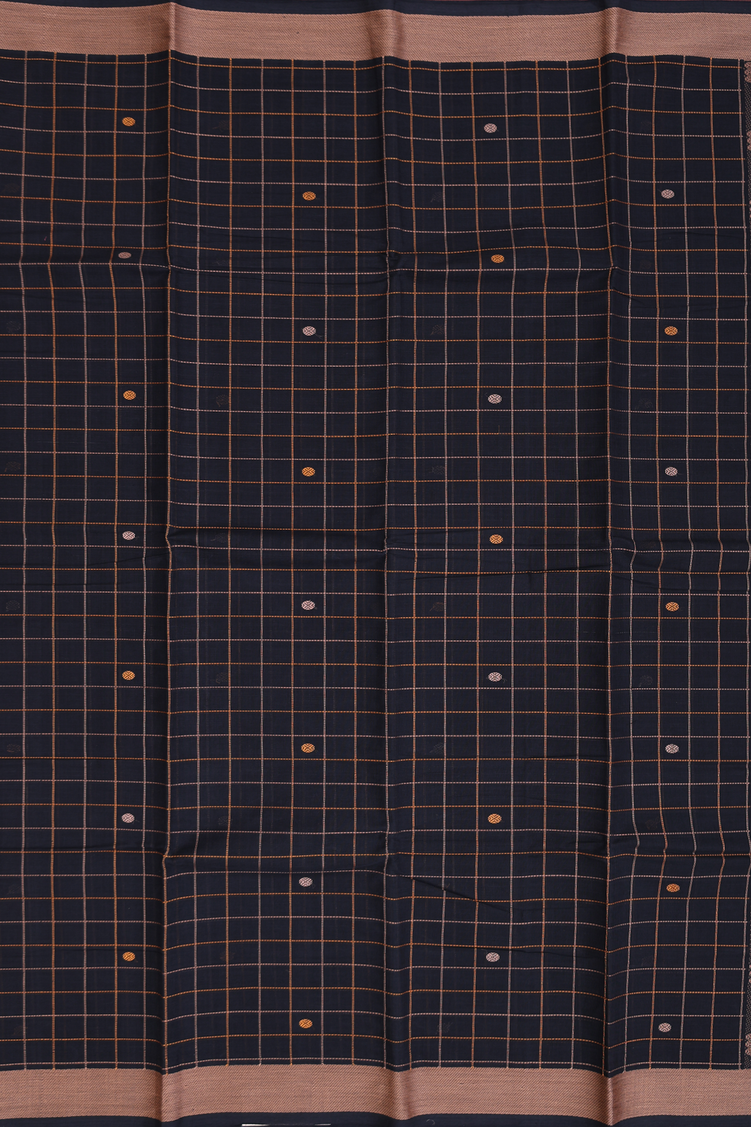 Kanchi Cotton Saree In Black With Checks Design