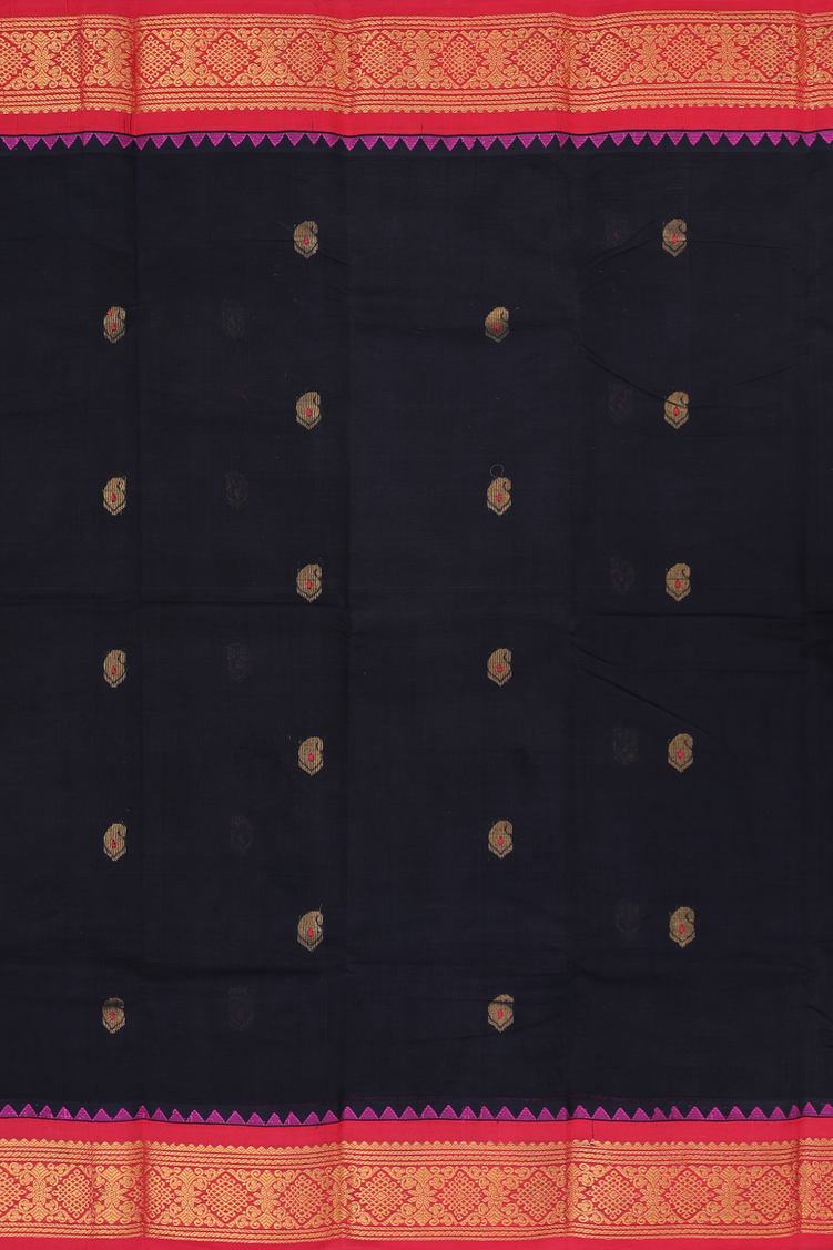 Kanchi Cotton Saree In Black With Contrast Silk Border