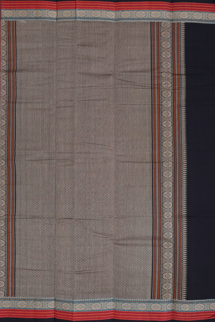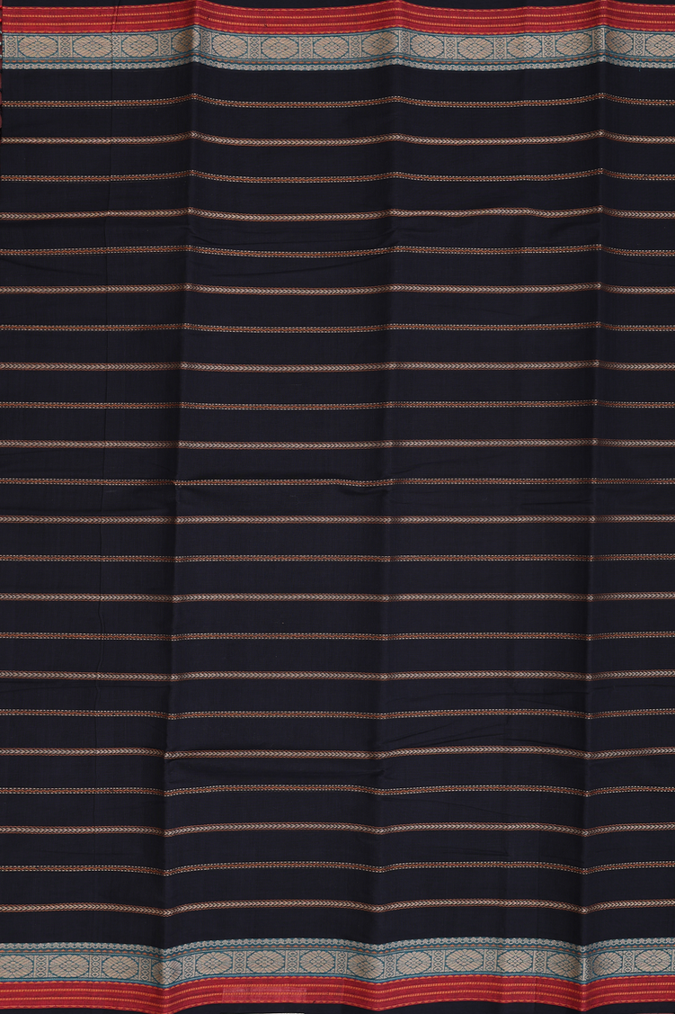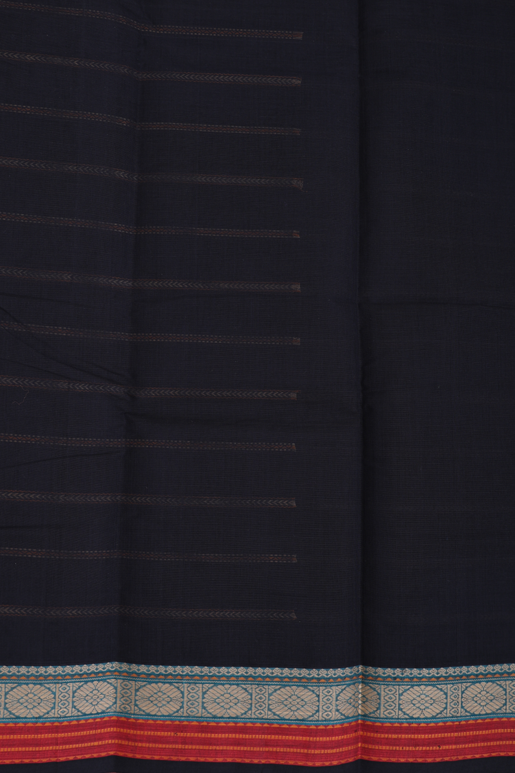 Elevate your everyday elegance with this kanchi cotton saree, a timeless piece that seamlessly blends tradition with contemporary style. The striking black base is enriched with refined stripe detailing, creating visual depth and movement. Crafted from breathable Kanchi cotton, this saree offers exceptional comfort for all-day wear while maintaining its graceful drape. Perfect for casual gatherings, office occasions, or festive celebrations, this versatile saree transitions effortlessly across seasons. The classic black palette pairs beautifully with traditional jewelry or modern accessories, making it an essential addition to any discerning wardrobe.