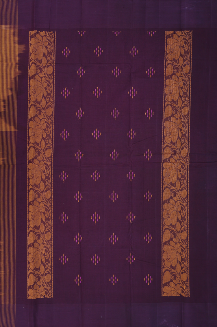 Kanchi Cotton Saree In Brown With Threadwork Buttas