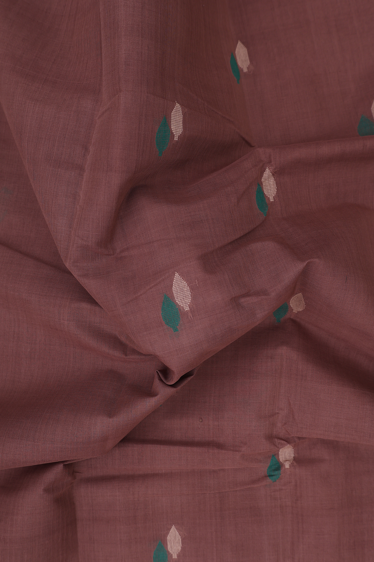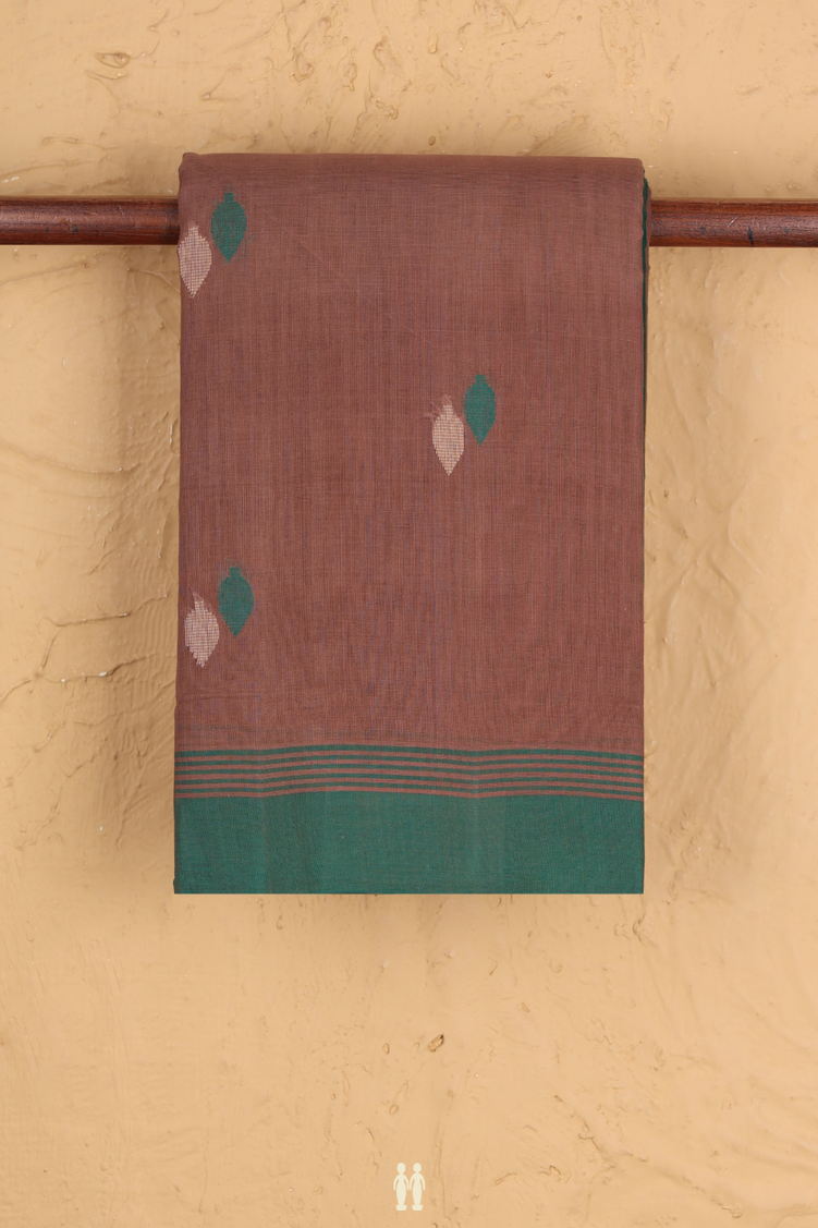 Kanchi Cotton Saree In Cocoa Brown With Threadwork Buttas