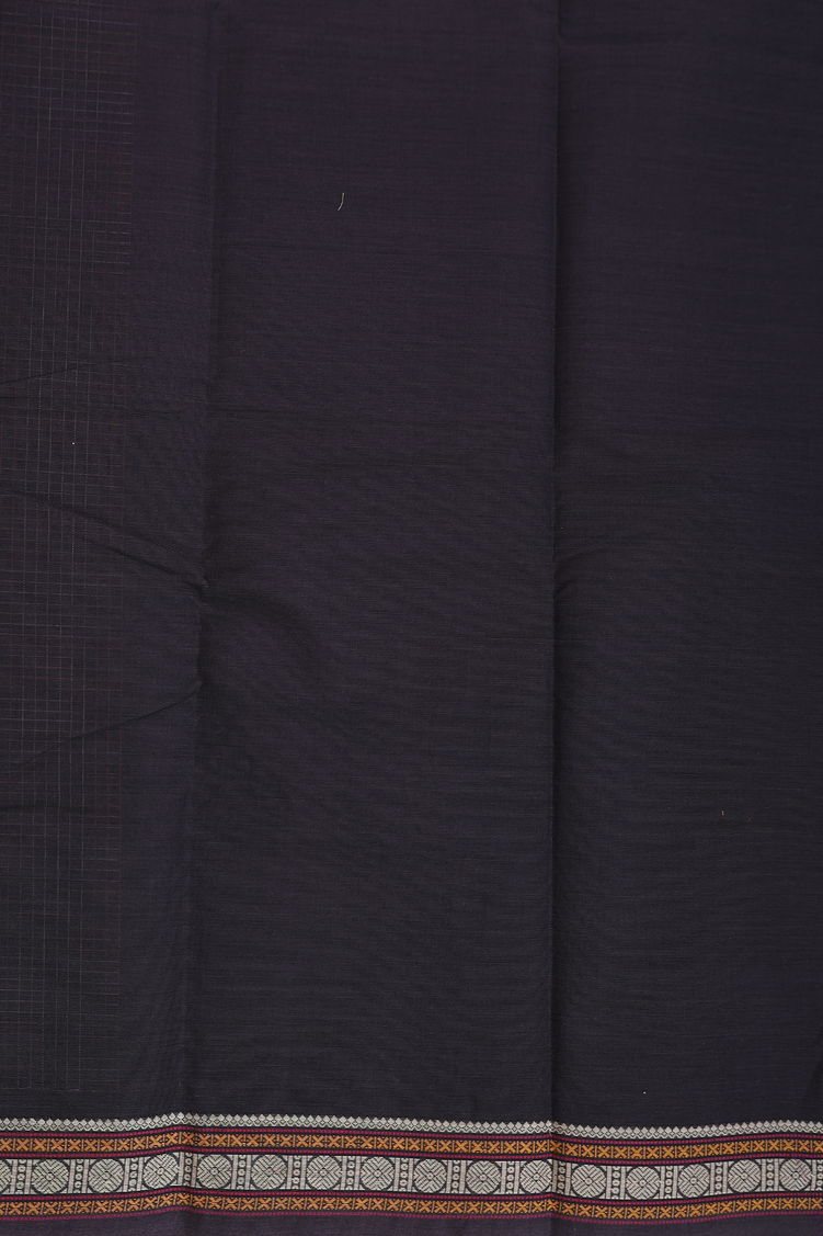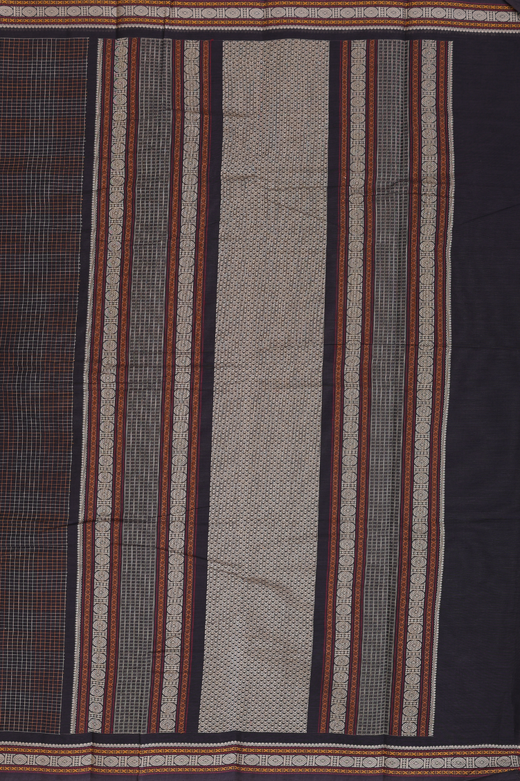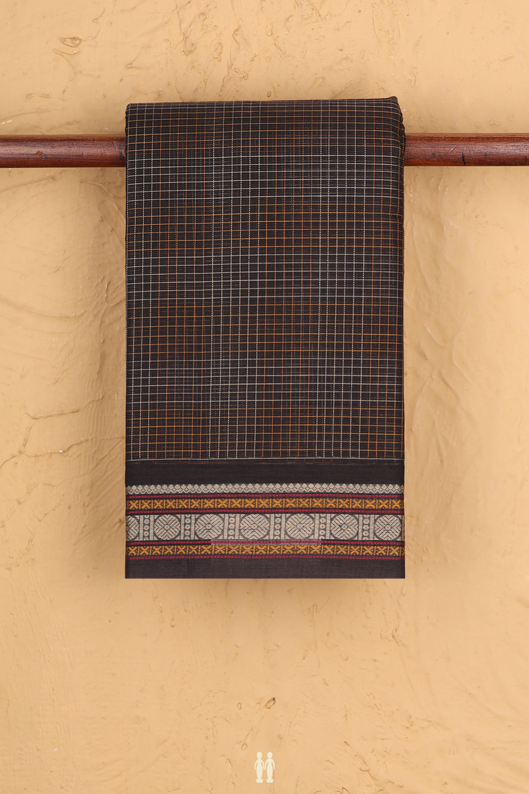 Kanchi Cotton Saree In Dark Oak Brown With Checks Design