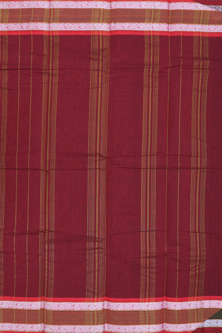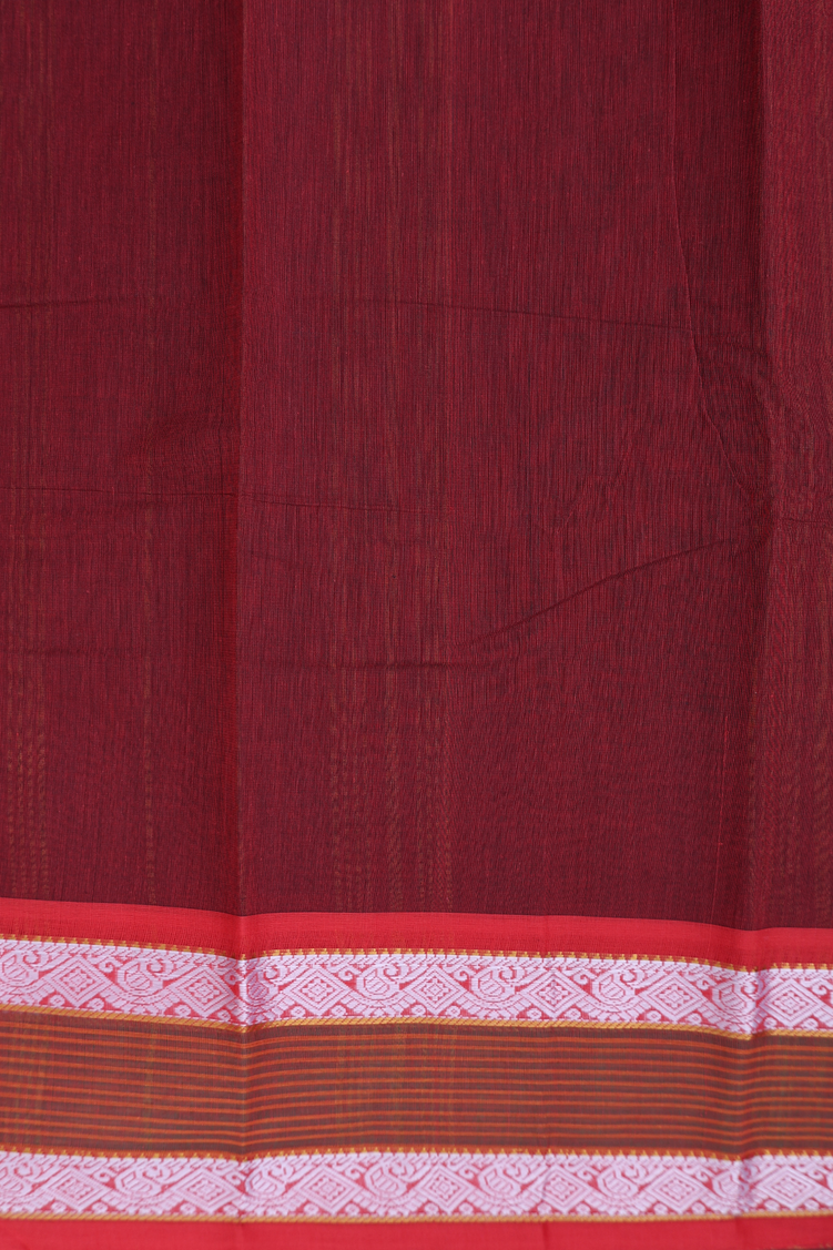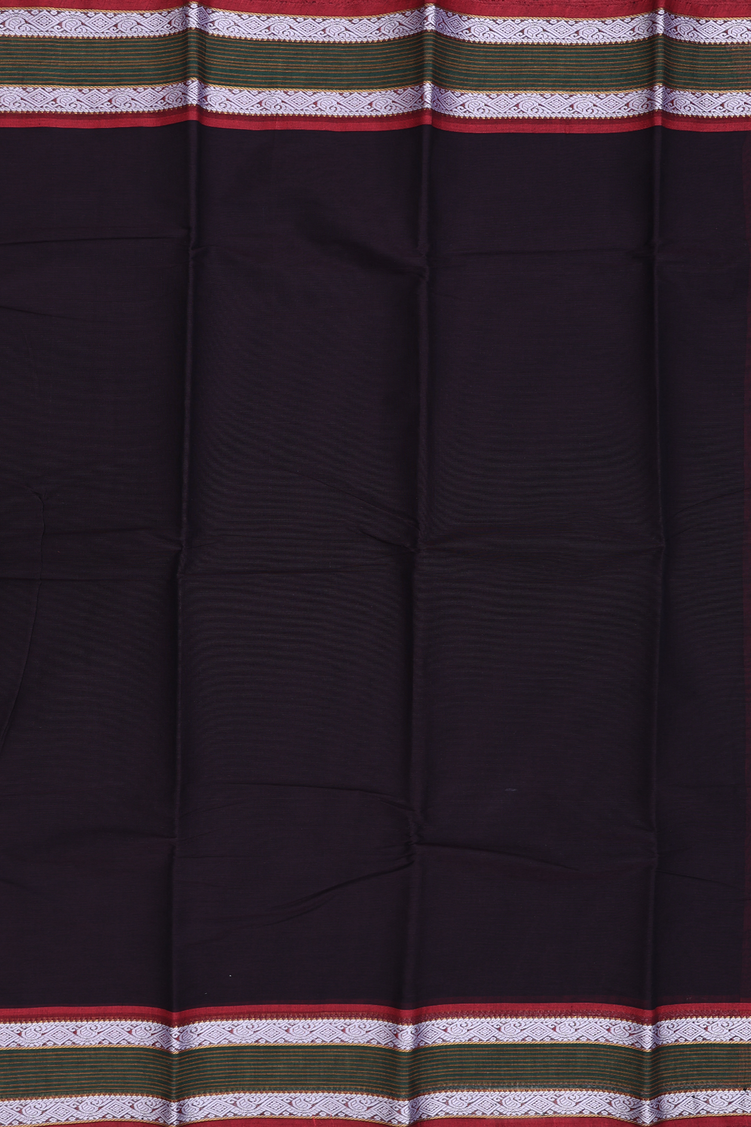 Kanchi Cotton Saree In Dark Oak Brown With Contrast Border