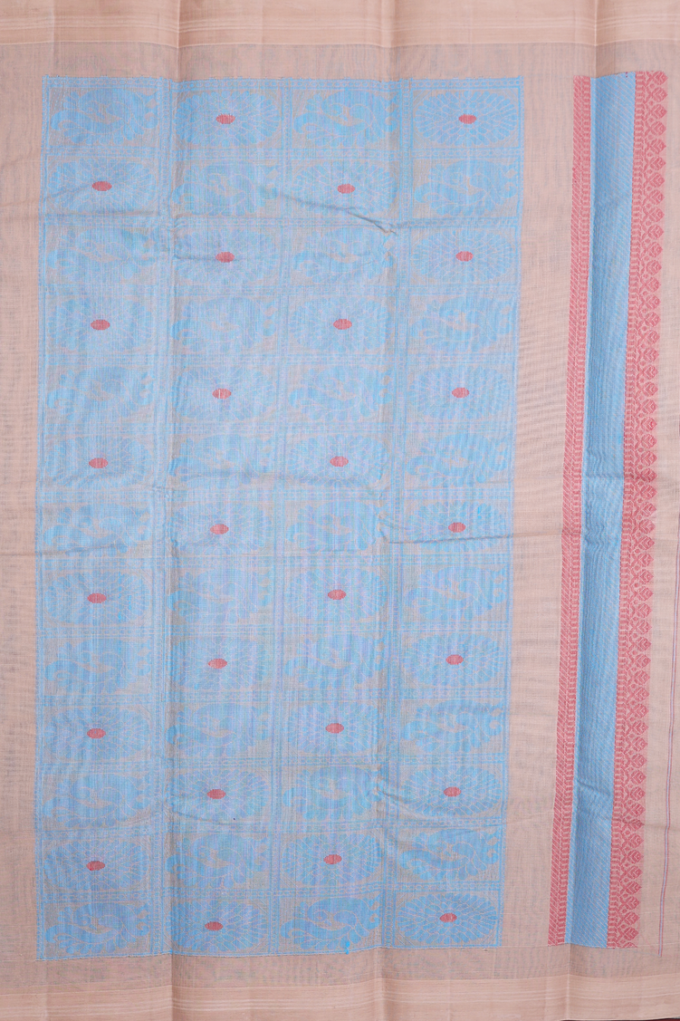 Kanchi Cotton Saree In Deep Sky Blue With Threadwork Buttas