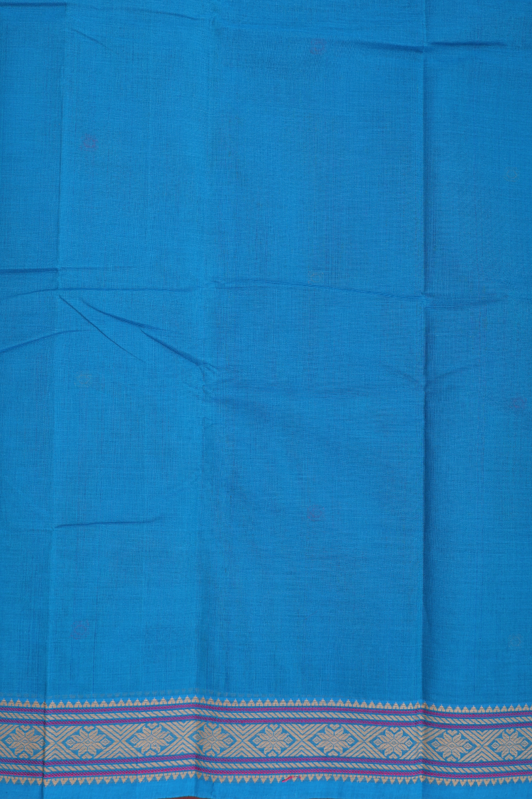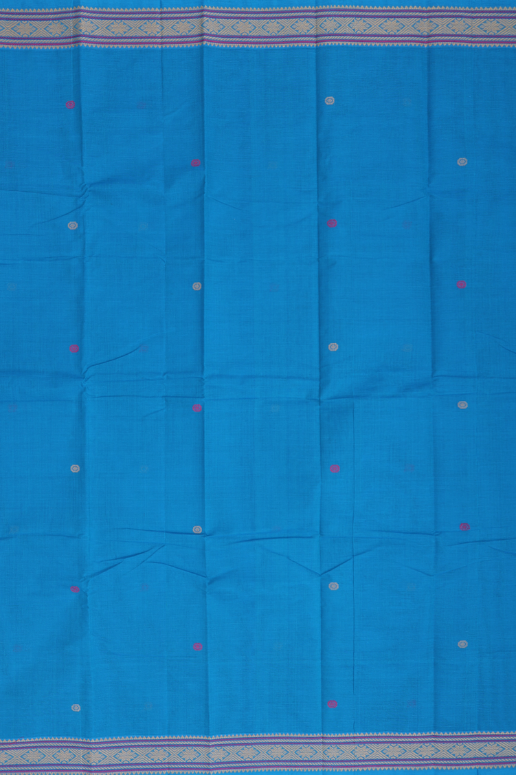 Kanchi Cotton Saree In Deep Sky Blue With Threadwork Buttas