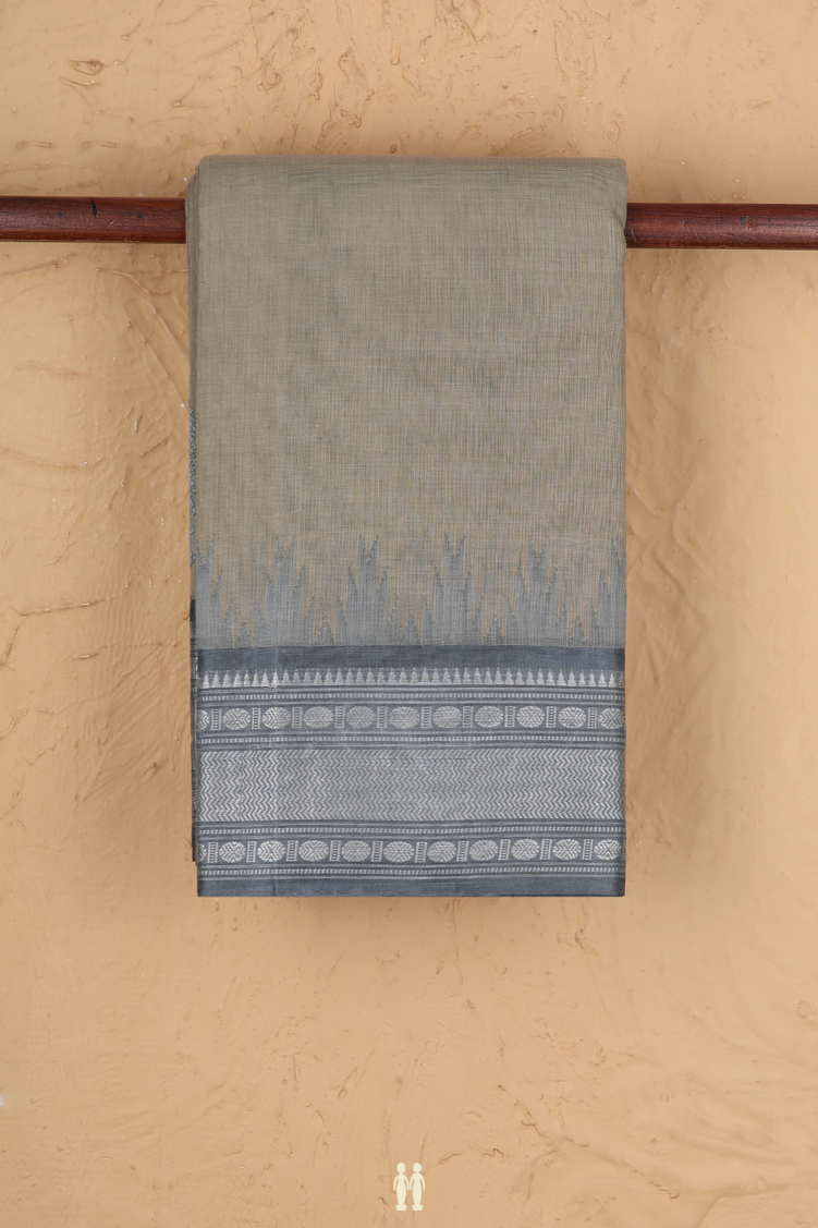 Kanchi Cotton Saree In Dusty Brown With Contrast Silk Border
