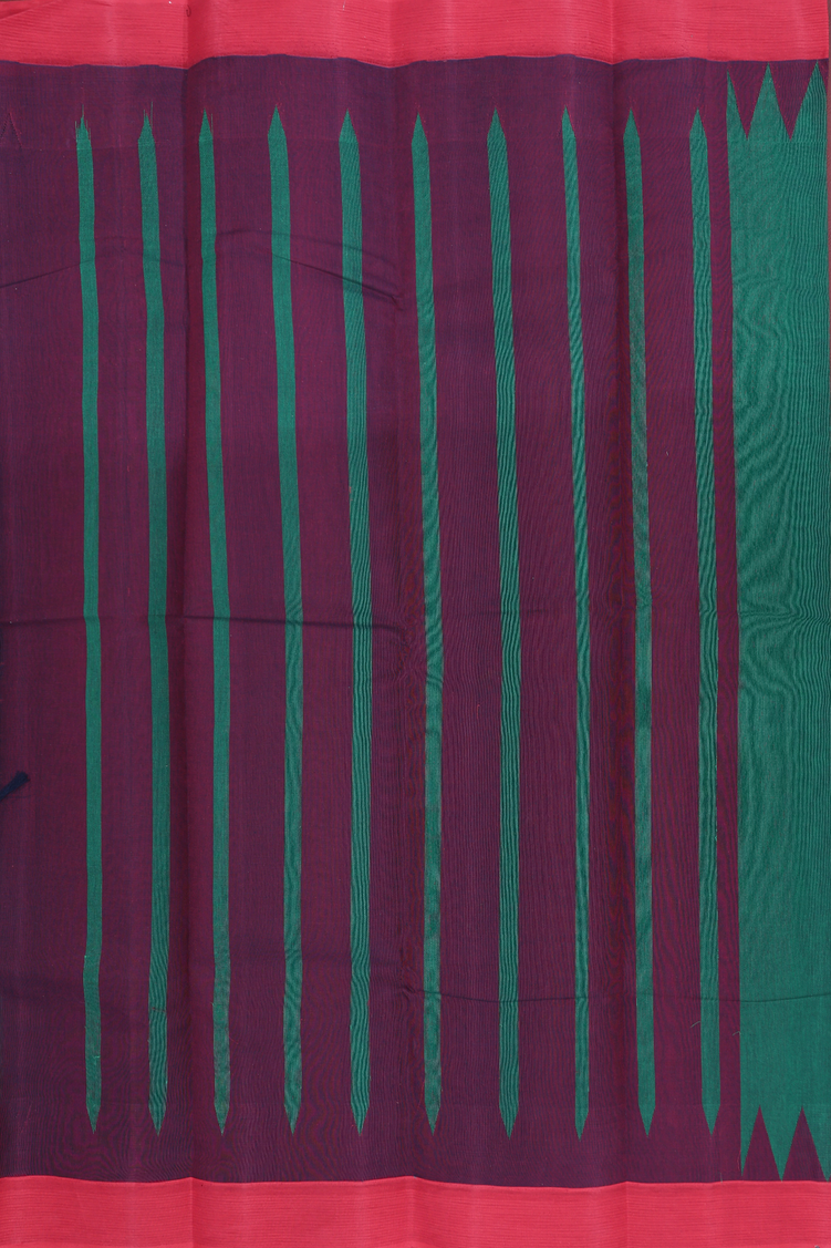 Kanchi Cotton Saree In Forest Green With Contrast Border