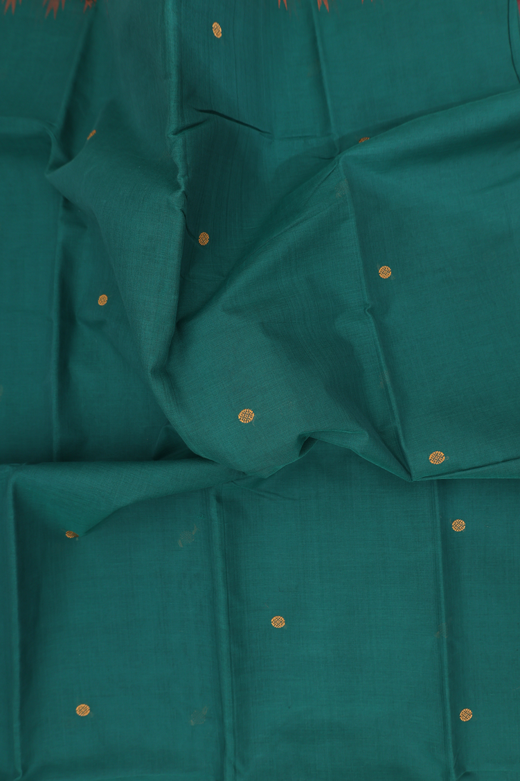 Kanchi Cotton Saree In Forest Green With Threadwork Buttas