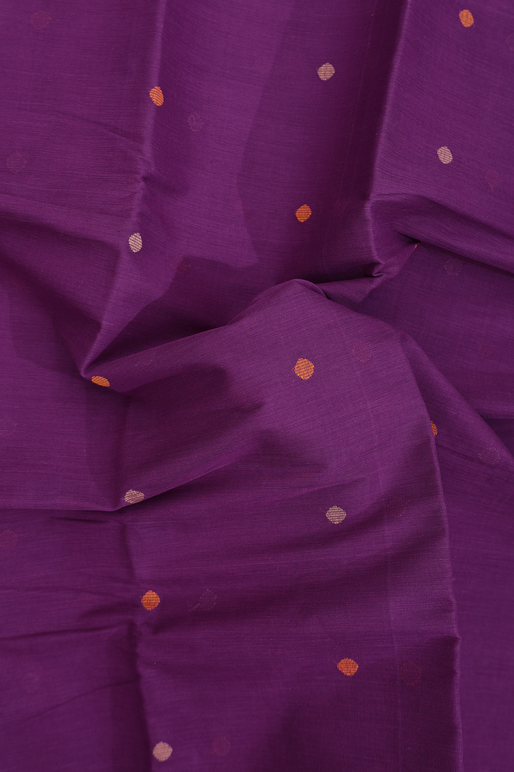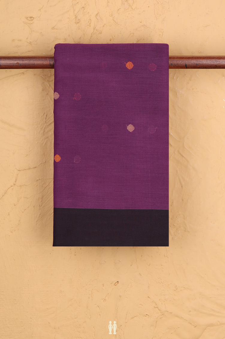 Kanchi Cotton Saree In Grape Purple With Threadwork Buttas
