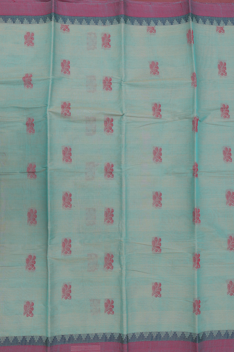 Kanchi Cotton Saree In Green With Threadwork Buttas
