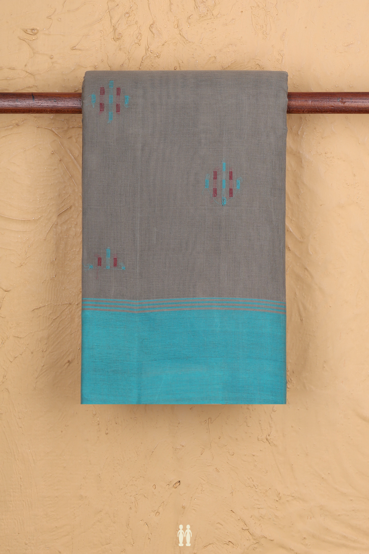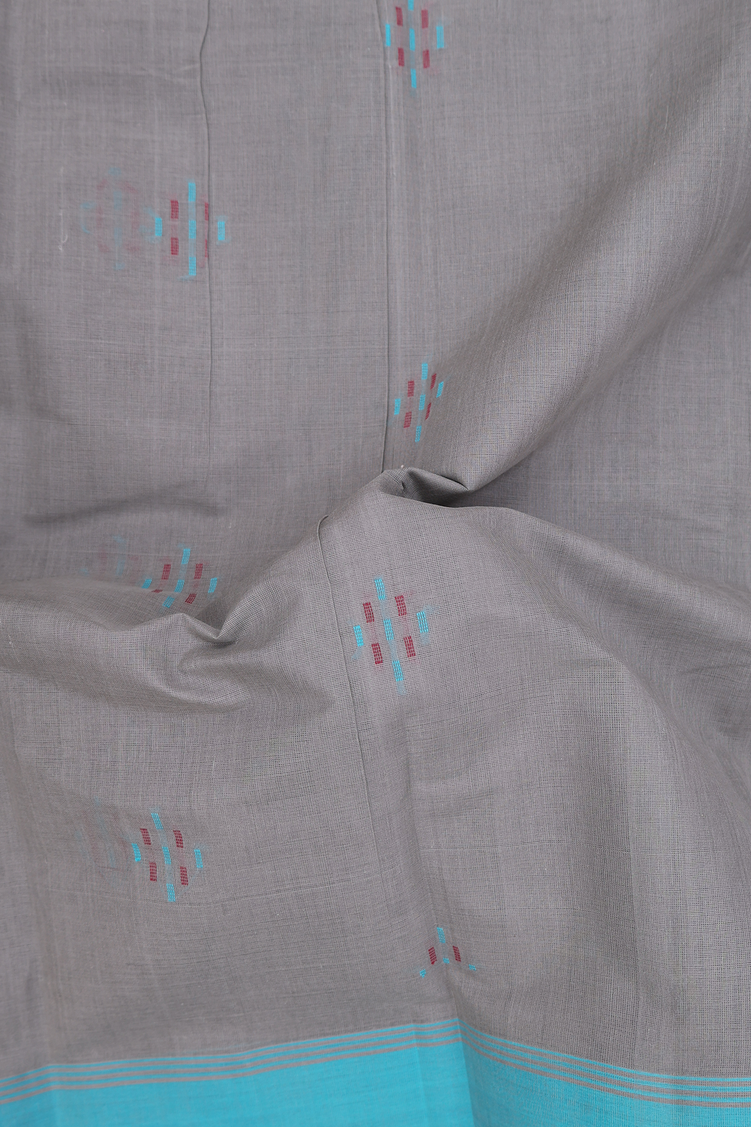 Kanchi Cotton Saree In Grey With Threadwork Buttas