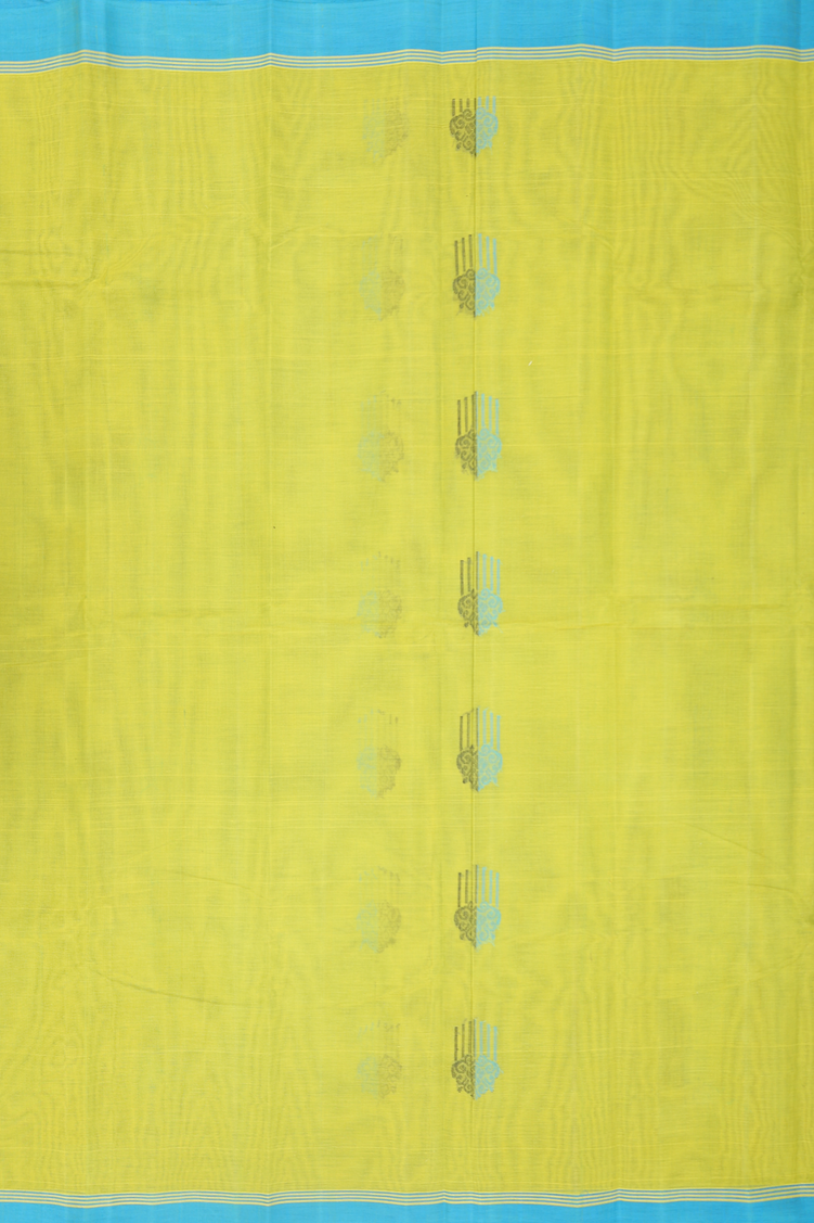 Kanchi Cotton Saree In Lime Green With Threadwork Buttas