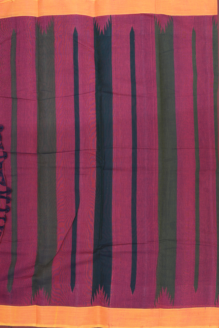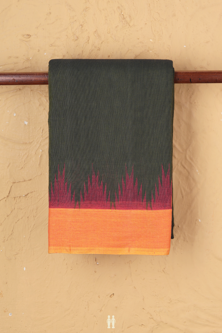 Kanchi Cotton Saree In Olive Green With Temple Border