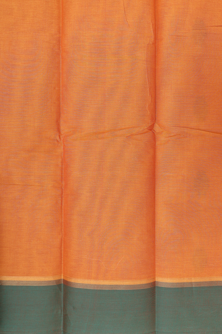 Kanchi Cotton Saree In Orange With Threadwork Buttas