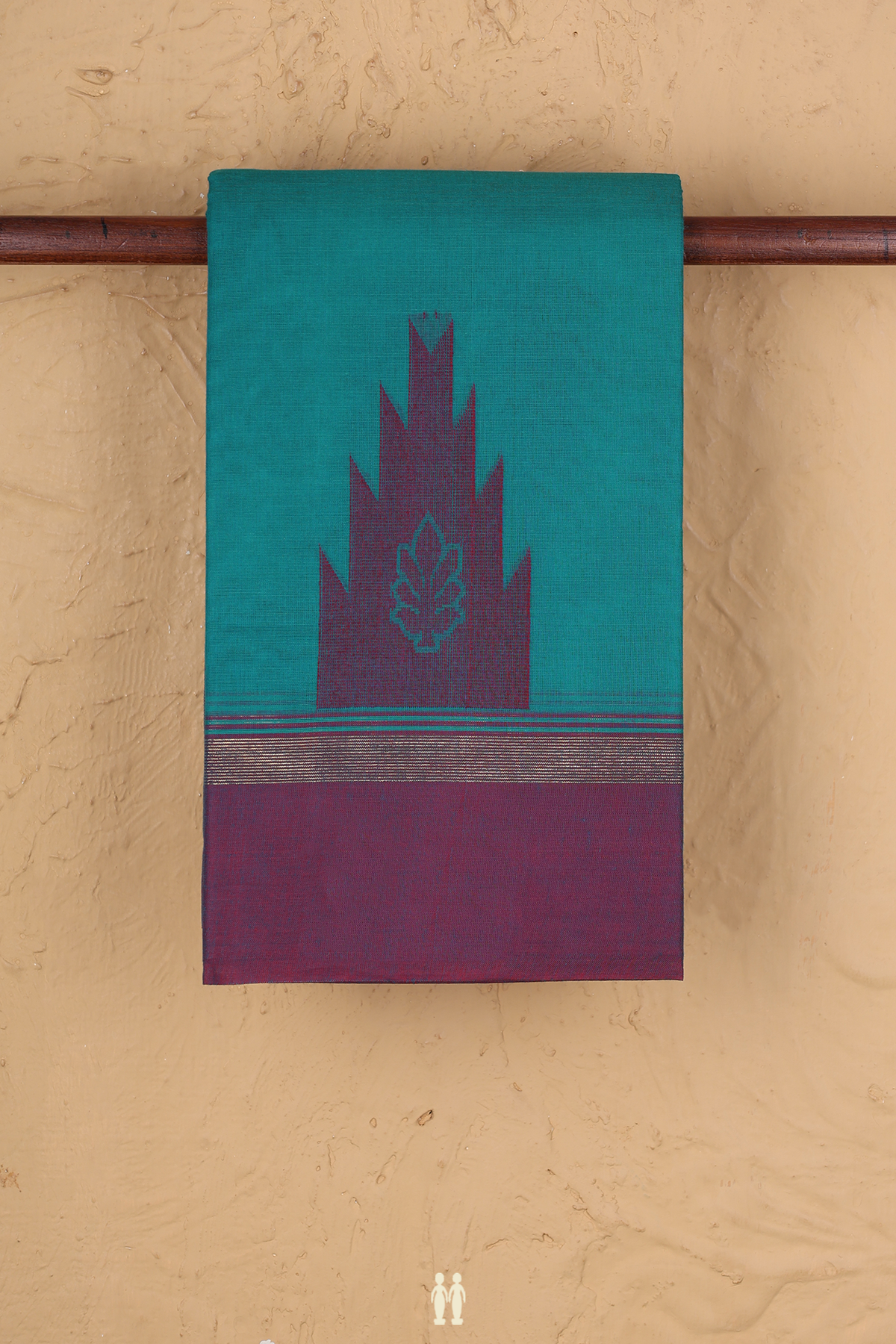 Kanchi Cotton Saree In Teal Blue With Threadwork Buttas