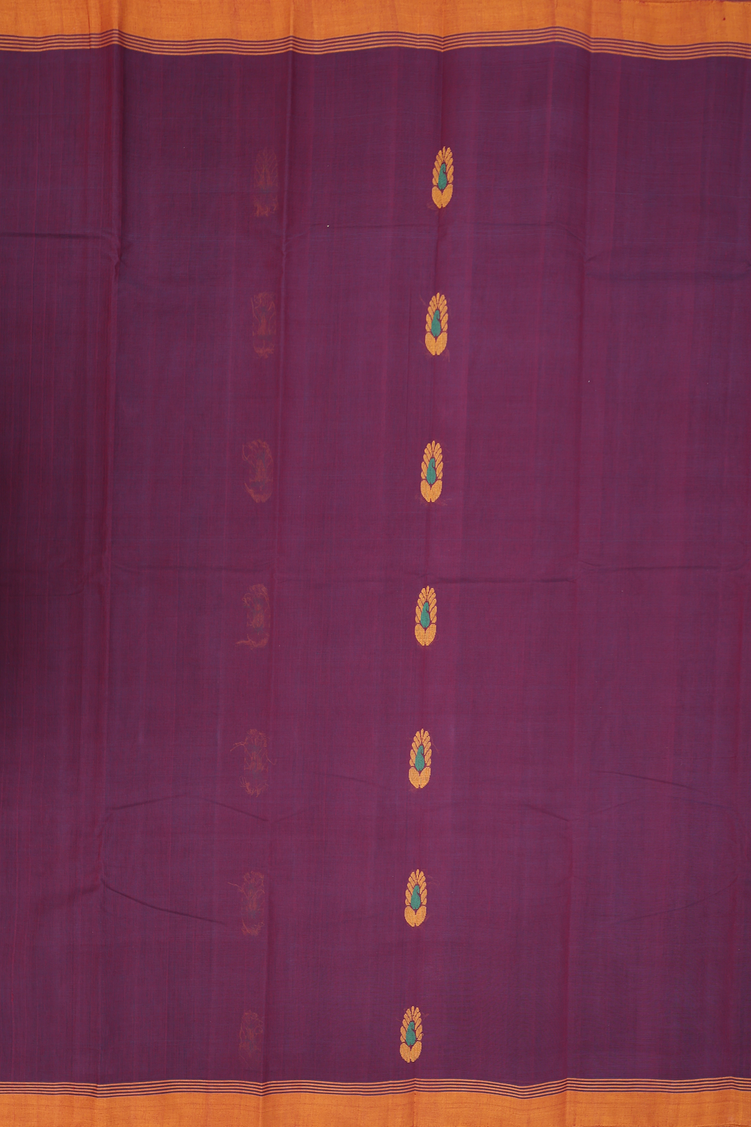 Kanchi Cotton Saree In Plum Brown With Paisley Buttas