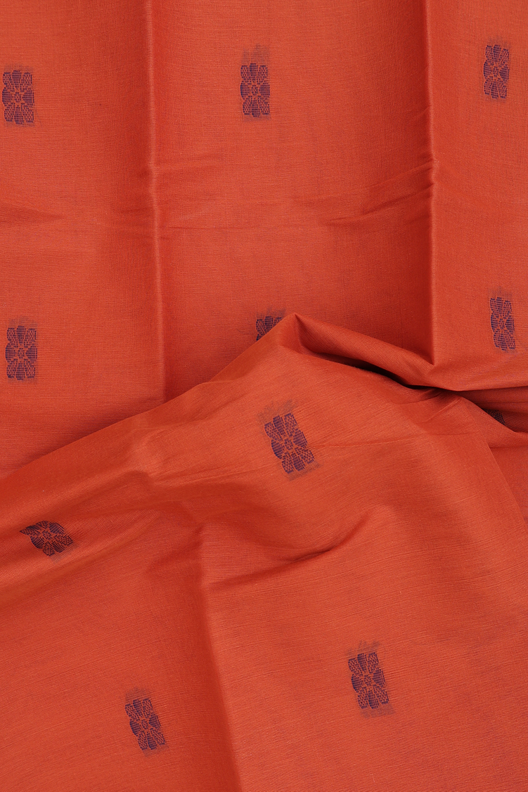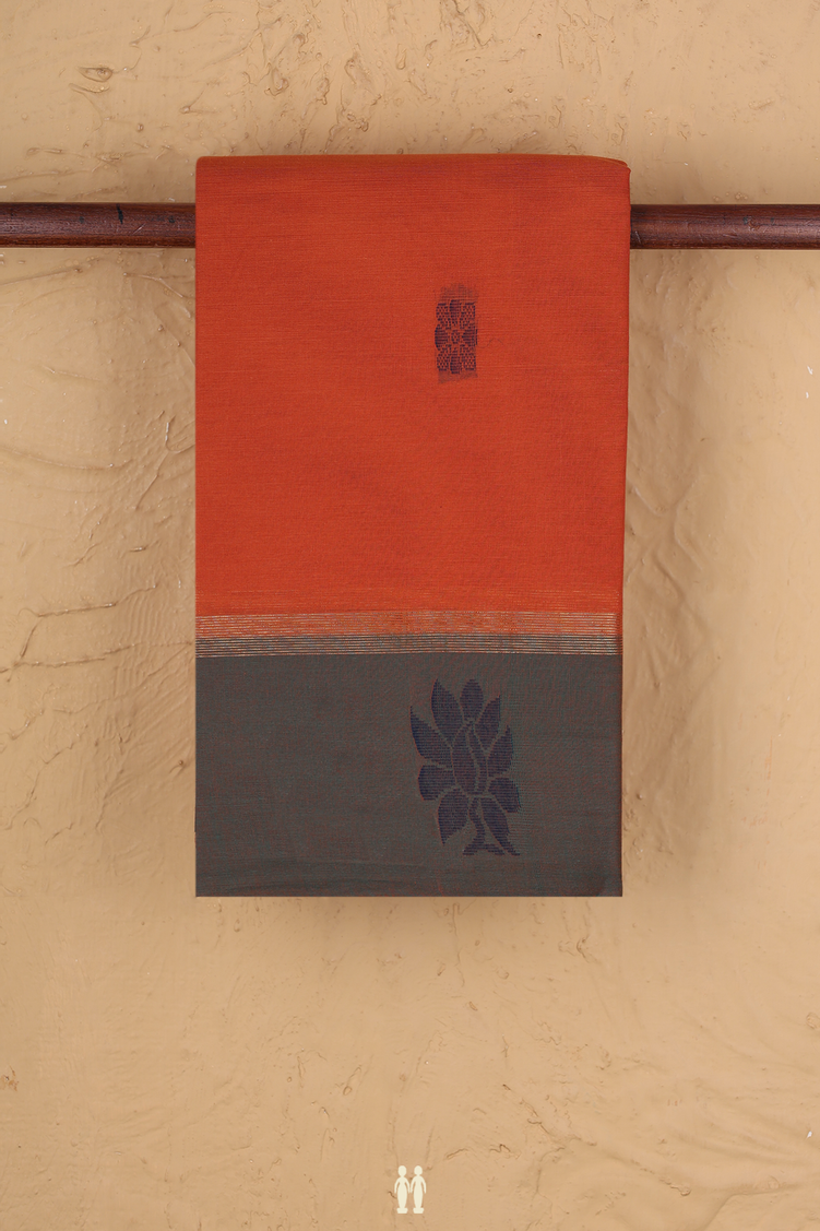 Kanchi Cotton Saree In Rust Orange With Floral Buttas