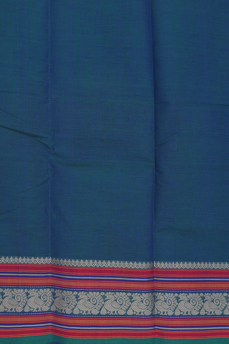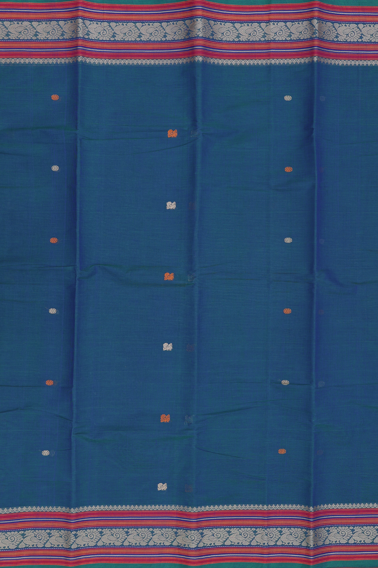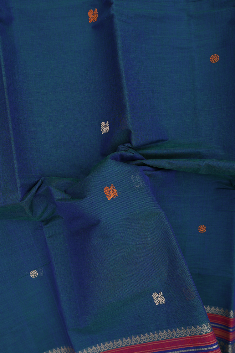 Kanchi Cotton Saree In Teal Blue With Peacock Buttas