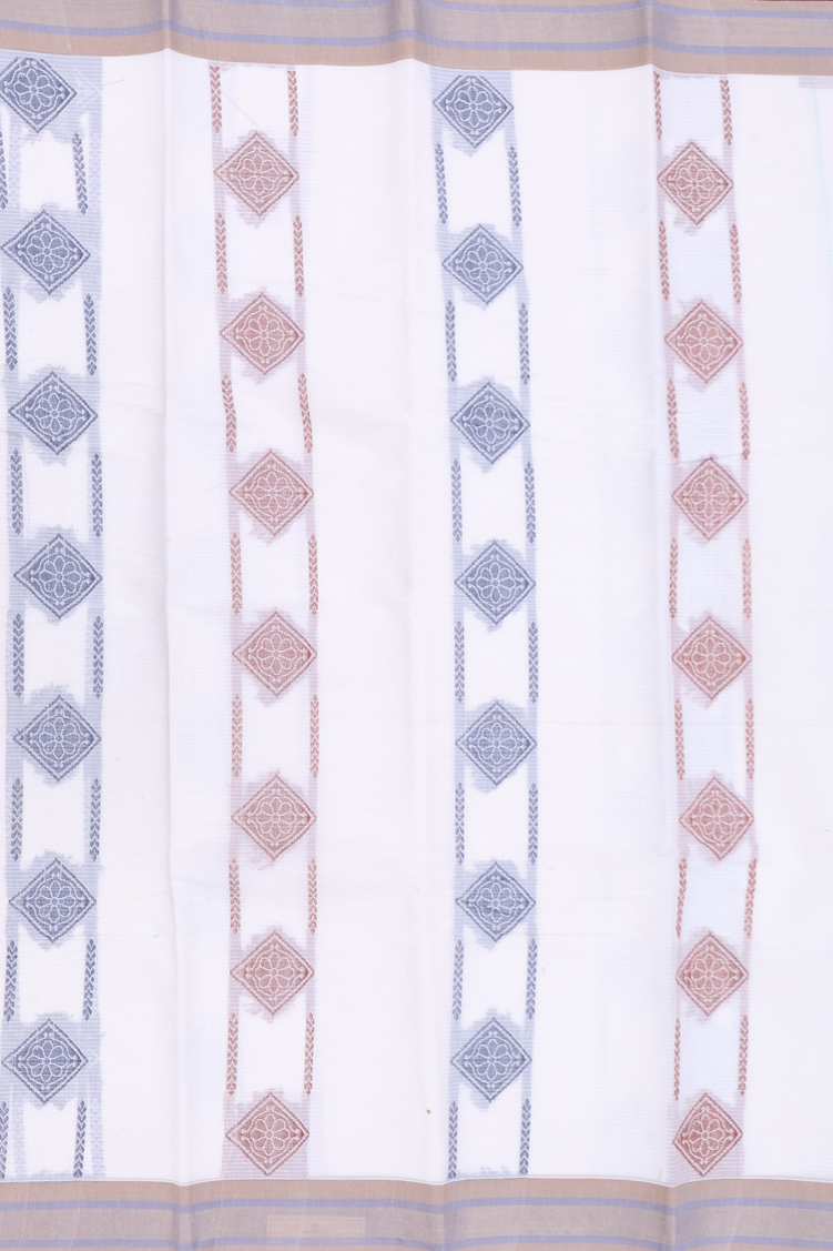 Kanchi Cotton Saree In White With Threadwork Design