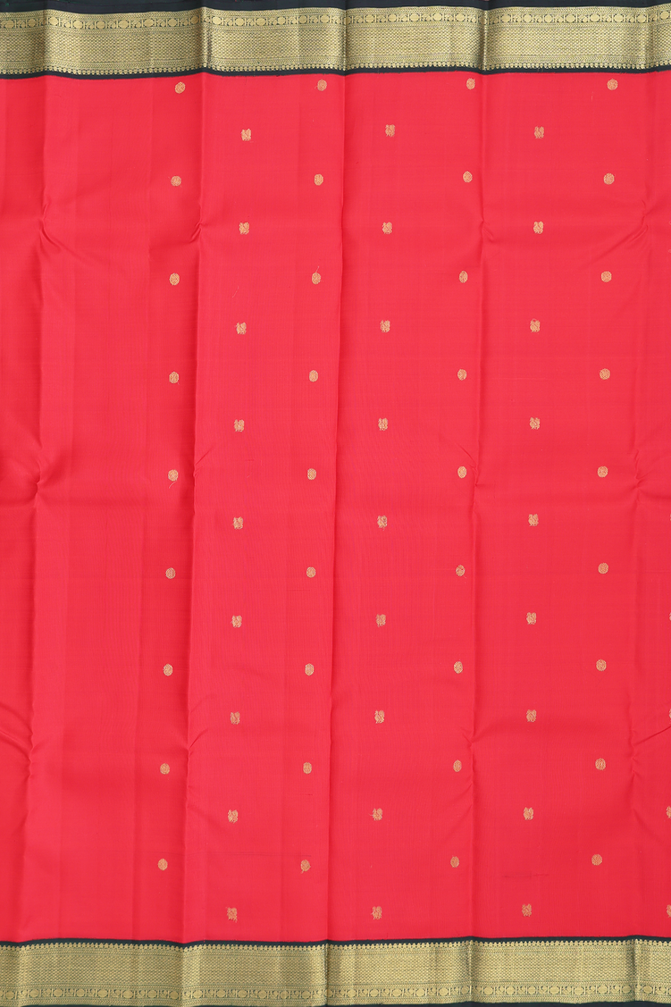 Kanchipuram Silk Saree In Chilli Red With Peacock Buttas
