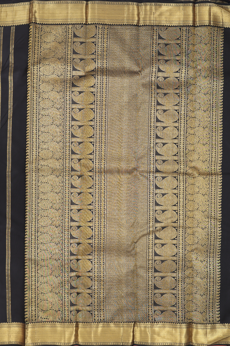 Kanchipuram Silk Saree Black With Peacock And Chakram Design
