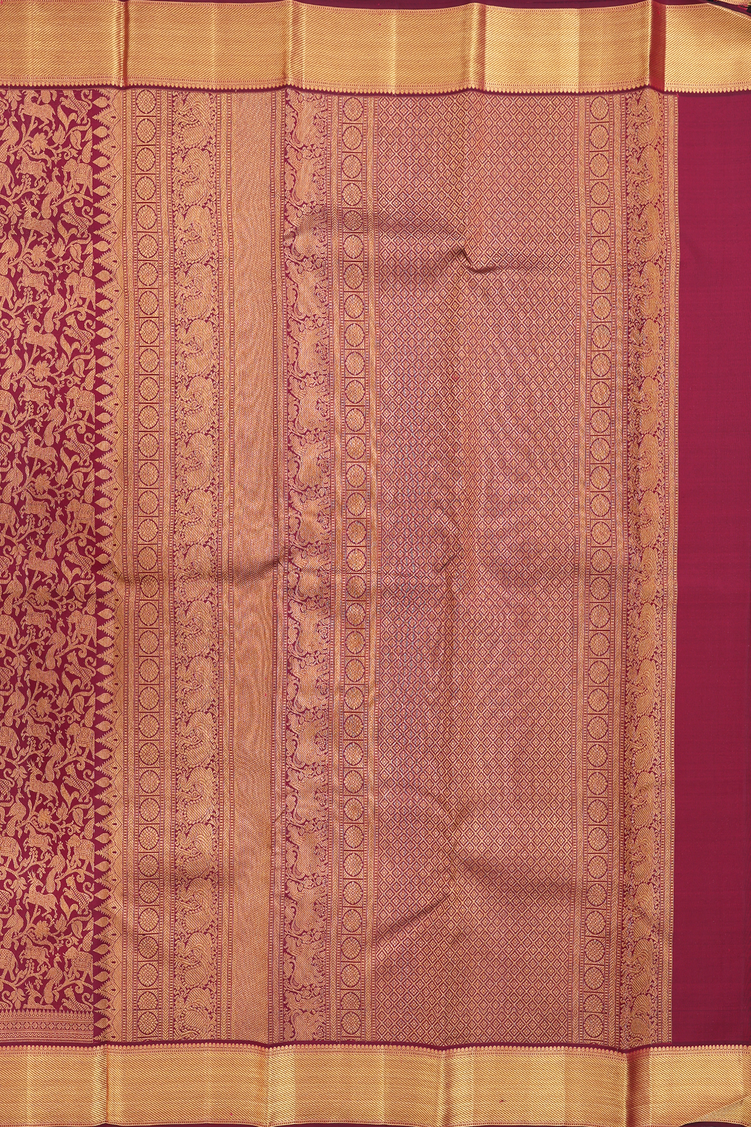 Kanchipuram Silk Saree Burgundy Red With Vanasingaram Design