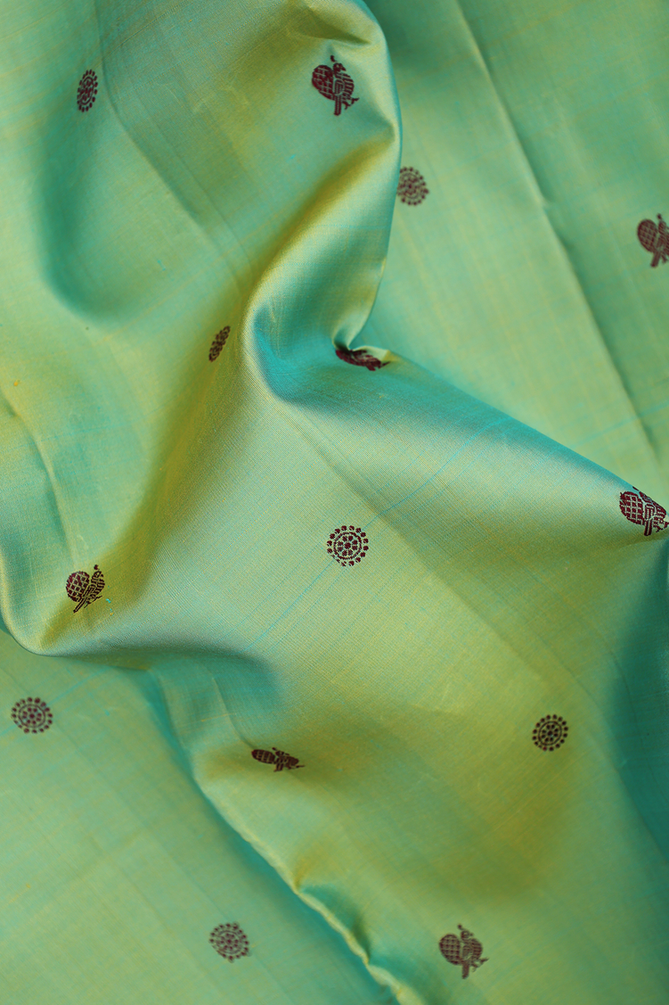 Kanchipuram Silk Saree Green With Peacock Buttas