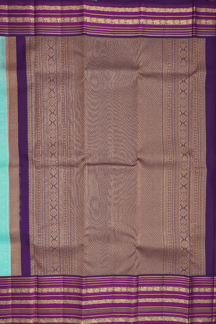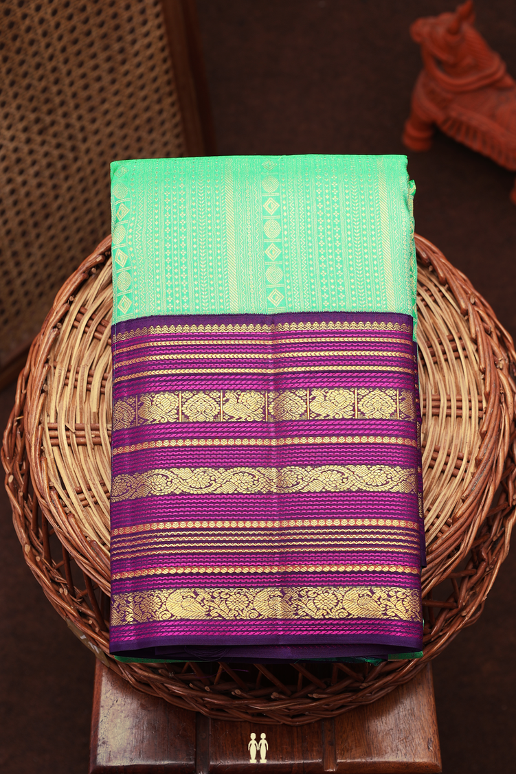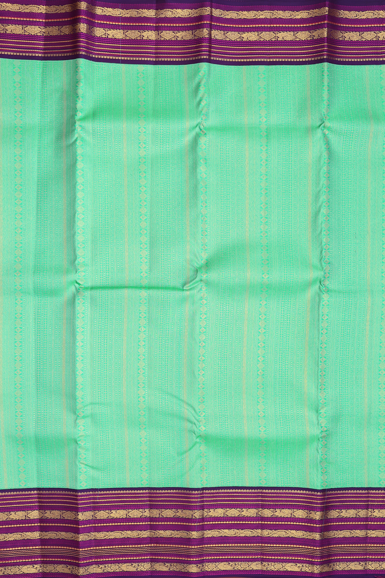 Kanchipuram Silk Saree In Aqua Green With Stripes Design