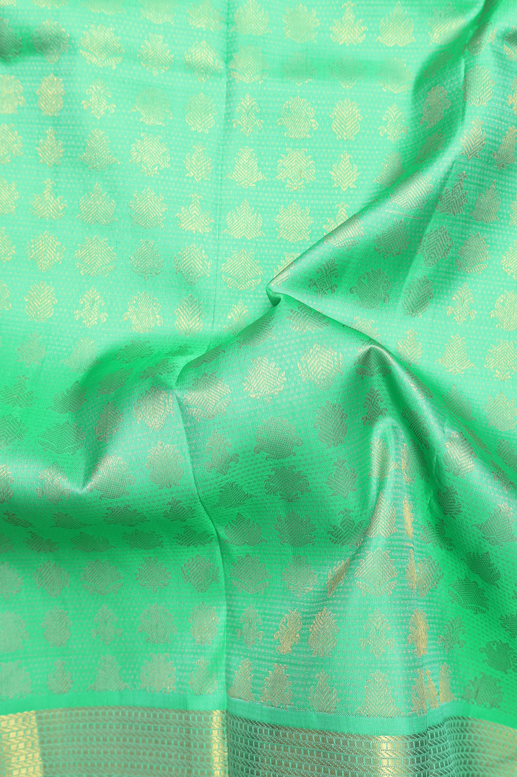 Kanchipuram Silk Saree In Aqua Green With Zari Buttas