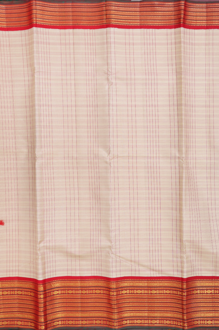 Elevate your ethnic wardrobe with this exquisite kanchipuram silk saree, a timeless masterpiece crafted from the finest silk. The sophisticated beige base is adorned with a refined checks design, creating an understated yet striking visual appeal. Known for its lustrous finish and exceptional durability, kanchipuram silk drapes beautifully while maintaining its shape. Perfect for weddings, festivals, and formal occasions, this saree seamlessly blends traditional craftsmanship with contemporary elegance. The intricate weaving technique ensures a luxurious feel against the skin, making it an investment piece for the discerning woman who appreciates authentic Indian textiles.