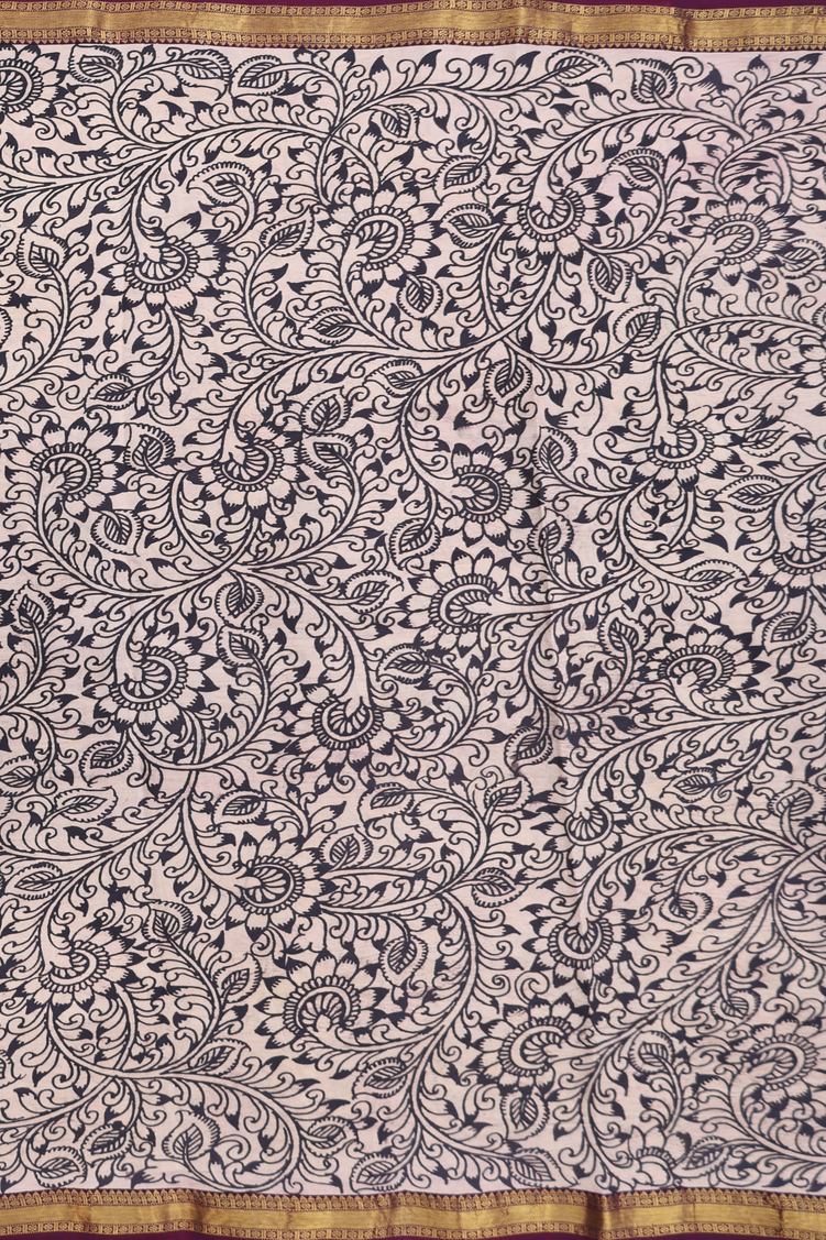 Kanchipuram Silk Saree In Beige With Floral Hand Painted