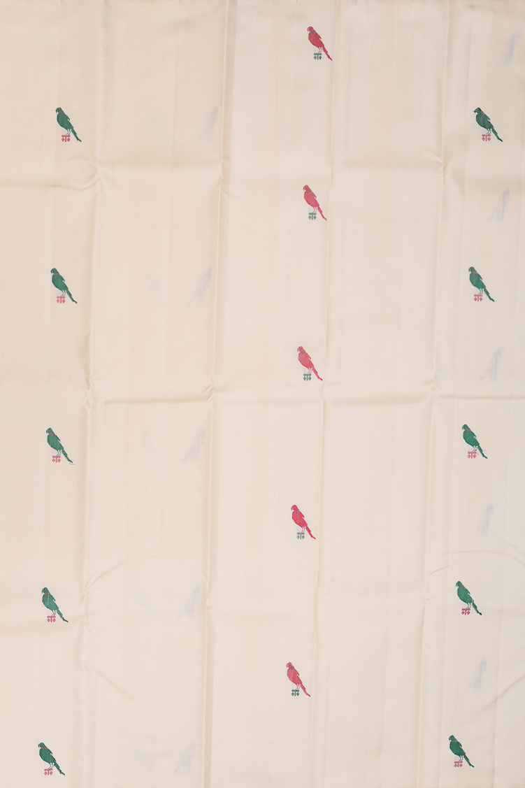 Kanchipuram Silk Saree In Beige With Parrot Buttas